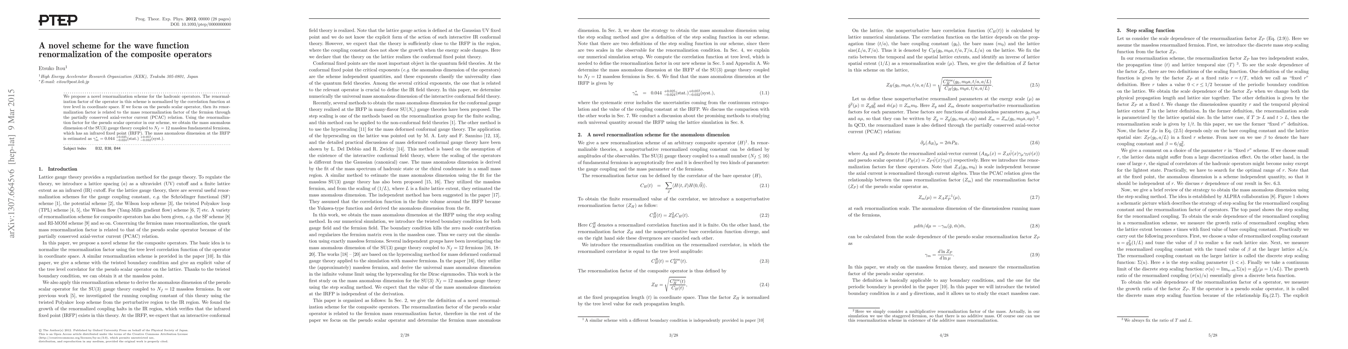This paper proposes a new renormalization scheme for hadronic operators, normalizing the operator's factor by the tree-level correlation function in coordinate space. The scheme estimates the mass anomalous dimension for SU(3) gauge theory with 12 massless fermions at an infrared fixed point, yielding gamma_m^*=0.044±0.059.