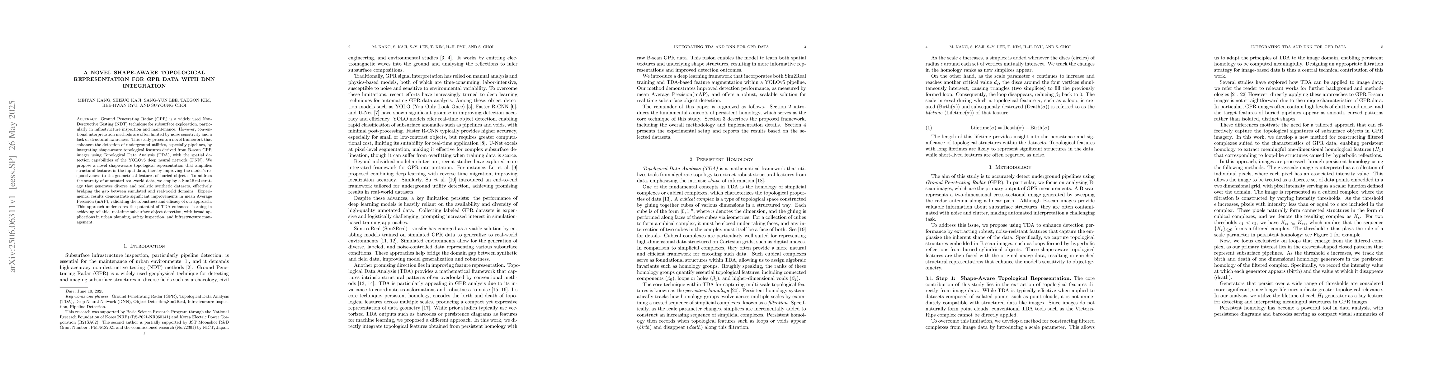 Ground Penetrating Radar (GPR) is a widely used Non-Destructive Testing (NDT) technique for subsurface exploration, particularly in infrastructure inspection and maintenance. However, conventional interpretation methods are often limited by noise sensitivity and a lack of structural awareness. This study presents a novel framework that enhances the detection of underground utilities, especially pipelines, by integrating shape-aware topological features derived from B-scan GPR images using Topological Data Analysis (TDA), with the spatial detection capabilities of the YOLOv5 deep neural network (DNN). We propose a novel shape-aware topological representation that amplifies structural features in the input data, thereby improving the model's responsiveness to the geometrical features of buried objects. To address the scarcity of annotated real-world data, we employ a Sim2Real strategy that generates diverse and realistic synthetic datasets, effectively bridging the gap between simulated and real-world domains. Experimental results demonstrate significant improvements in mean Average Precision (mAP), validating the robustness and efficacy of our approach. This approach underscores the potential of TDA-enhanced learning in achieving reliable, real-time subsurface object detection, with broad applications in urban planning, safety inspection, and infrastructure management.