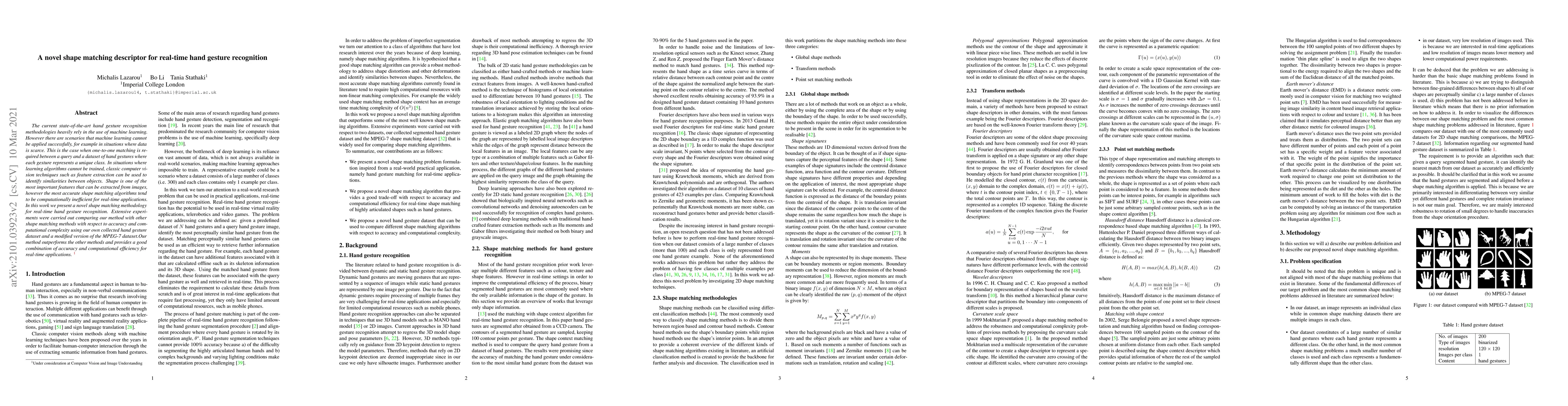 This paper introduces a novel shape matching descriptor for real-time hand gesture recognition, addressing scenarios where machine learning is infeasible due to limited data. The proposed method achieves high accuracy and computational efficiency, outperforming existing shape matching techniques in experiments using custom and MPEG-7 datasets.