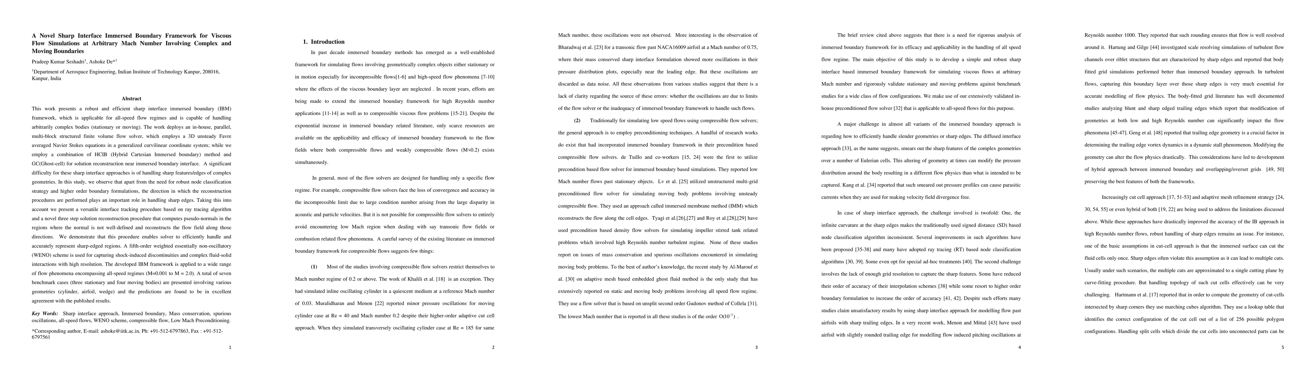 This paper introduces a novel sharp interface immersed boundary framework for simulating viscous flows at all Mach numbers, employing a parallel finite volume solver and a hybrid reconstruction method to handle complex, moving boundaries. The framework accurately represents sharp features through a three-step solution reconstruction and ray tracing, validated by benchmark cases showing agreement with published results.