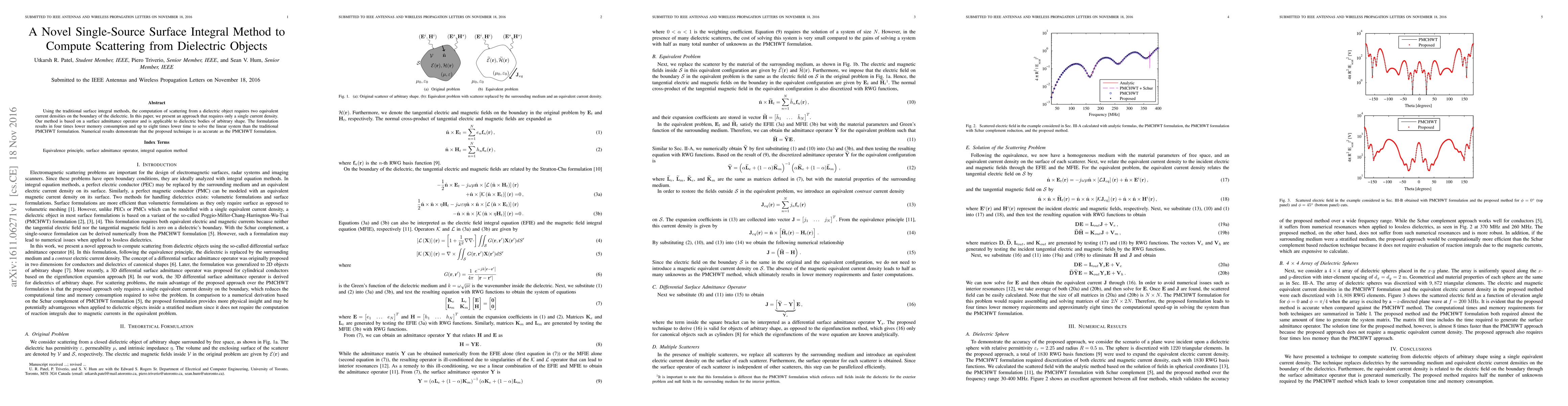 This paper introduces a novel single-source surface integral method that computes scattering from dielectric objects using only a single current density, significantly reducing memory and computational time compared to traditional methods. The new approach, based on a surface admittance operator, maintains accuracy while offering substantial efficiency gains.