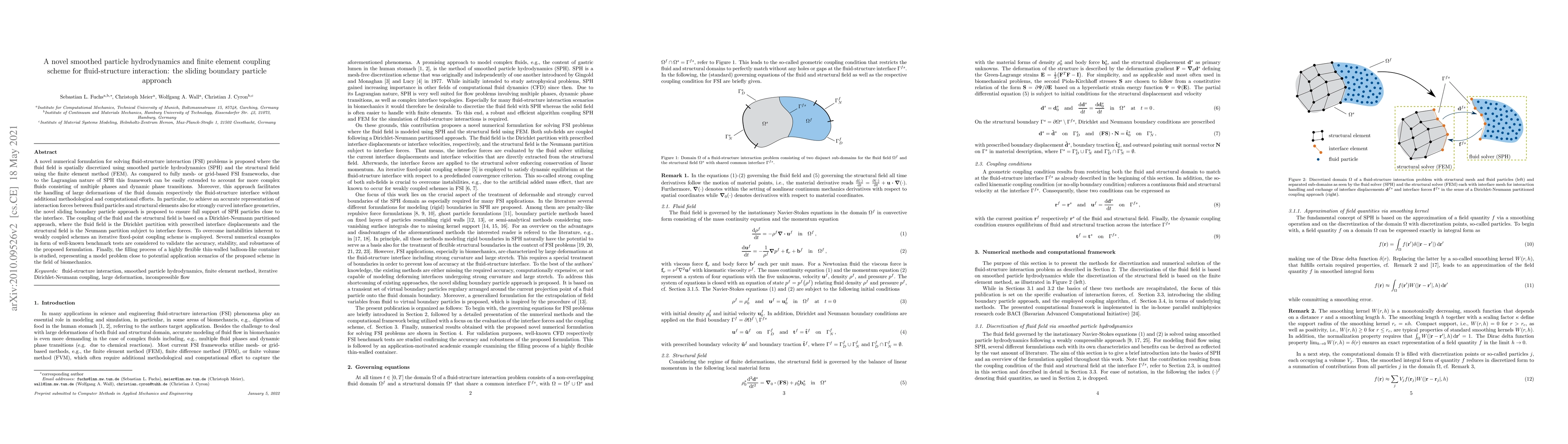 A novel numerical formulation for solving fluid-structure interaction (FSI) problems is proposed where the fluid field is spatially discretized using smoothed particle hydrodynamics (SPH) and the structural field using the finite element method (FEM). As compared to fully mesh- or grid-based FSI frameworks, due to the Lagrangian nature of SPH this framework can be easily extended to account for more complex fluids consisting of multiple phases and dynamic phase transitions. Moreover, this approach facilitates the handling of large deformations of the fluid domain respectively the fluid-structure interface without additional methodological and computational efforts. In particular, to achieve an accurate representation of interaction forces between fluid particles and structural elements also for strongly curved interface geometries, the novel sliding boundary particle approach is proposed to ensure full support of SPH particles close to the interface. The coupling of the fluid and the structural field is based on a Dirichlet-Neumann partitioned approach, where the fluid field is the Dirichlet partition with prescribed interface displacements and the structural field is the Neumann partition subject to interface forces. To overcome instabilities inherent to weakly coupled schemes an iterative fixed-point coupling scheme is employed. Several numerical examples in form of well-known benchmark tests are considered to validate the accuracy, stability, and robustness of the proposed formulation. Finally, the filling process of a highly flexible thin-walled balloon-like container is studied, representing a model problem close to potential application scenarios of the proposed scheme in the field of biomechanics.