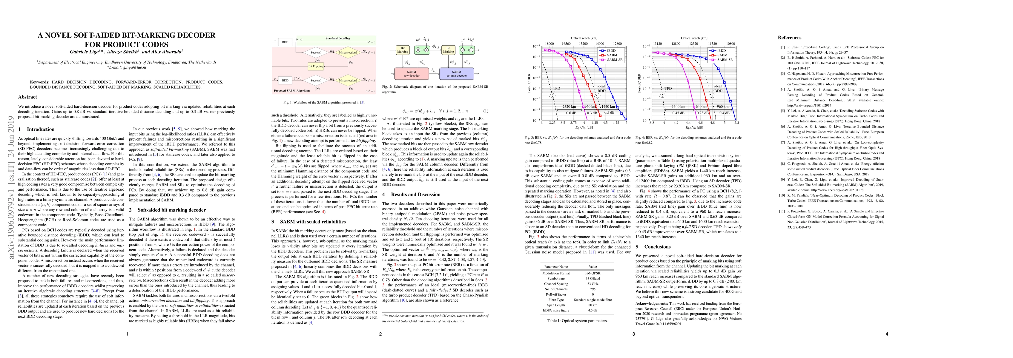 This paper presents a new soft-aided hard-decision decoder for product codes that uses bit marking based on updated reliabilities, achieving up to 0.8 dB improvement over standard iterative bounded distance decoding and up to 0.3 dB over a previously proposed bit-marking decoder.