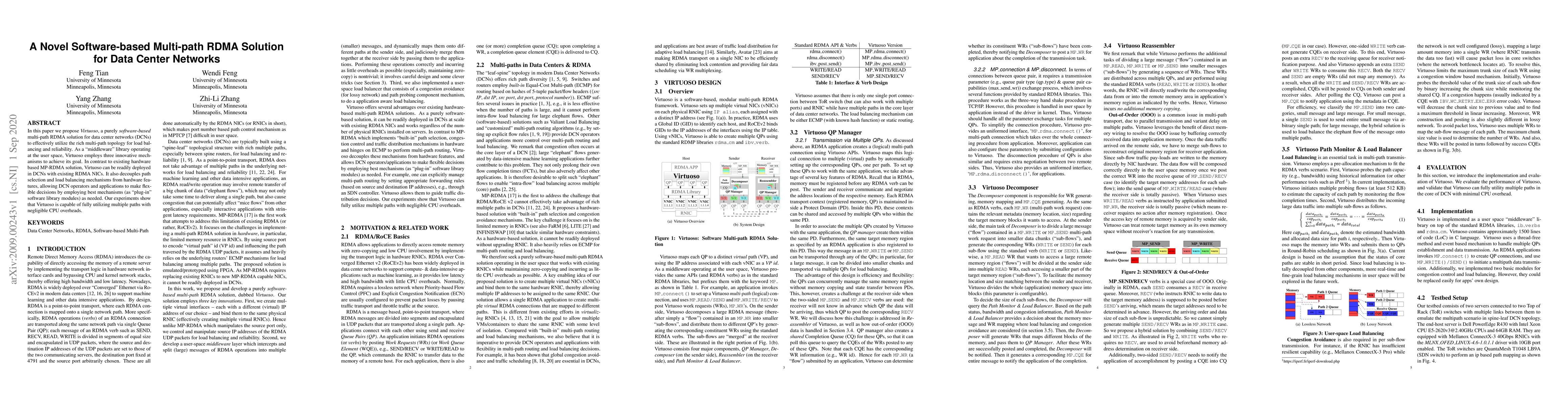 This paper introduces Virtuoso, a software-based multi-path RDMA solution for data center networks that leverages multi-path topology for load balancing and reliability. Unlike hardware-based solutions, Virtuoso operates as a middleware library, enabling flexible, plug-in mechanisms for path selection and load balancing with minimal CPU overhead.