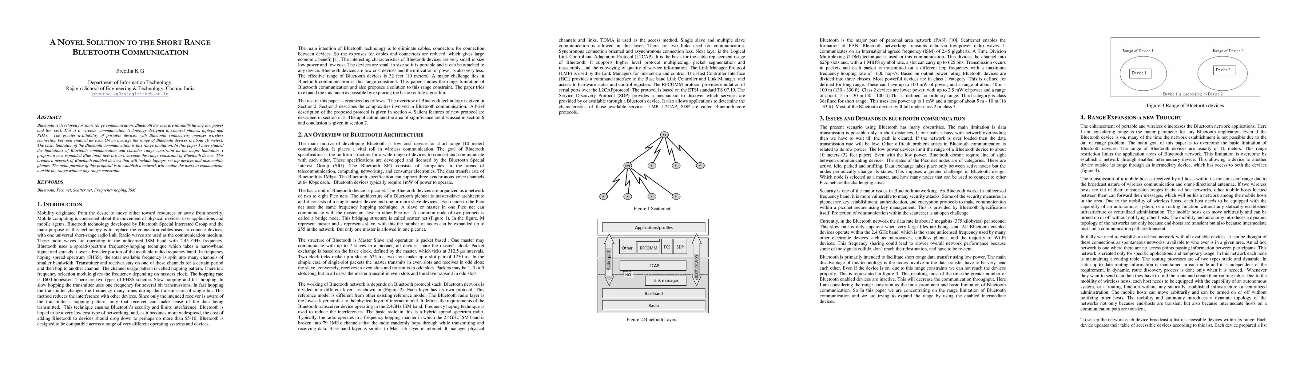 This paper addresses the range limitation of Bluetooth technology, proposing a novel expanded Bluetooth network to overcome this constraint and enable communication beyond the typical 10-meter range, facilitating connections among laptops, set-top devices, and mobile phones.