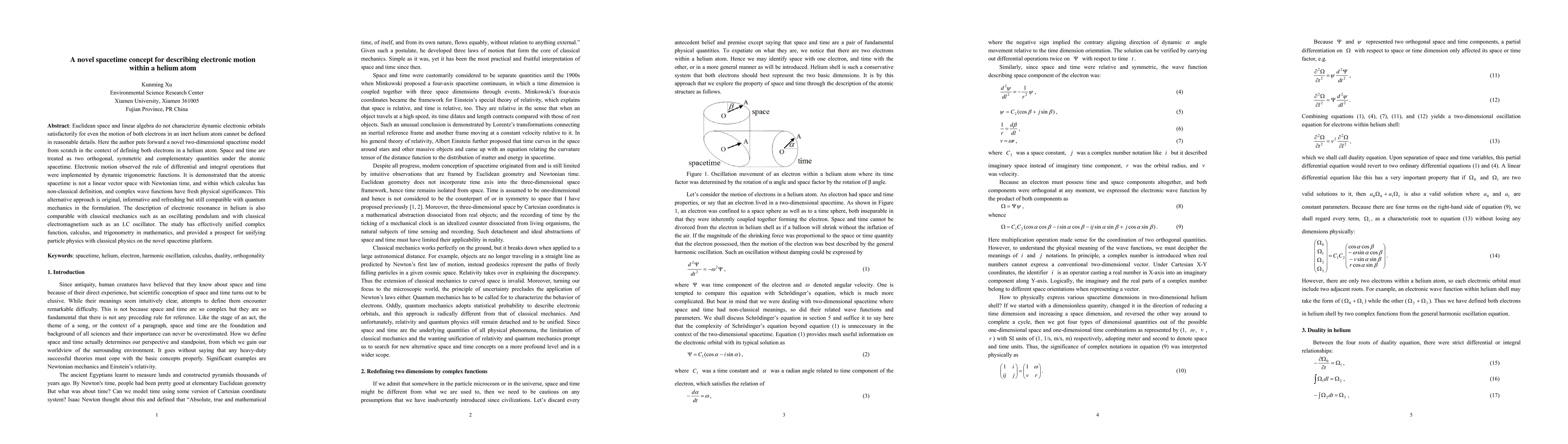 This paper proposes a novel two-dimensional spacetime model to describe the electronic motion in a helium atom, demonstrating that traditional Euclidean space and linear algebra are insufficient. The new model integrates complex wave functions and non-classical calculus, offering a fresh perspective compatible with quantum mechanics and potentially unifying particle physics with classical physics.
