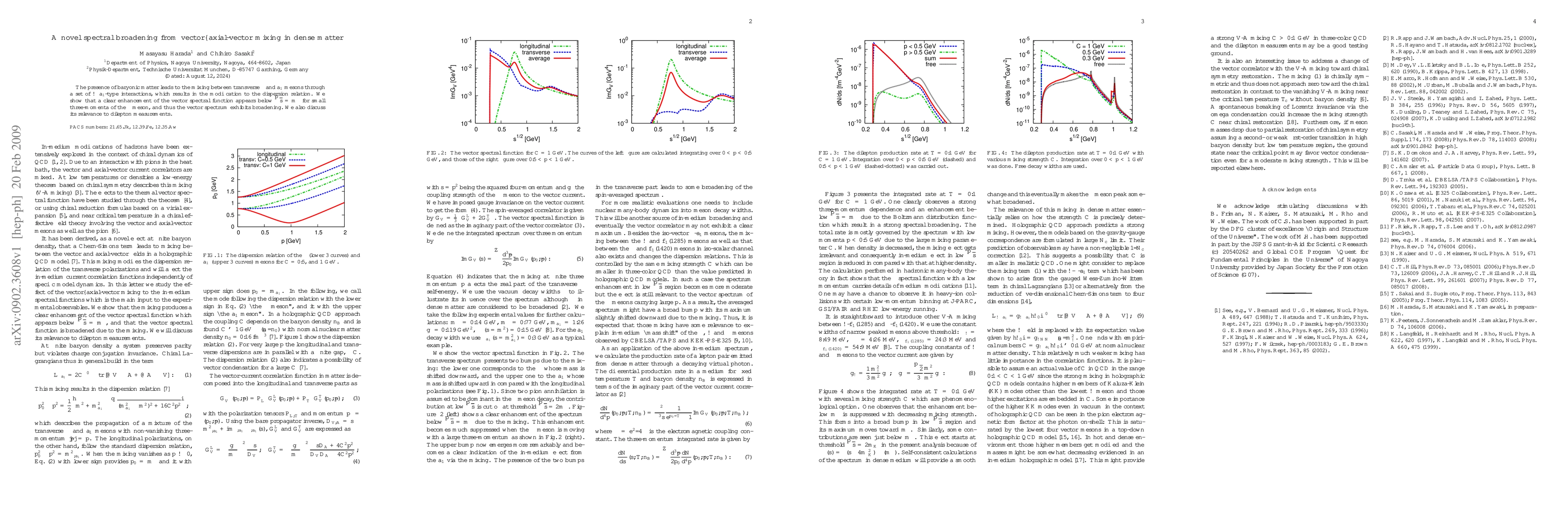 Researchers found a novel spectral broadening in dense matter due to vector-axial-vector mixing, leading to enhanced vector spectral functions below the rho meson's mass, with implications for dilepton measurements.