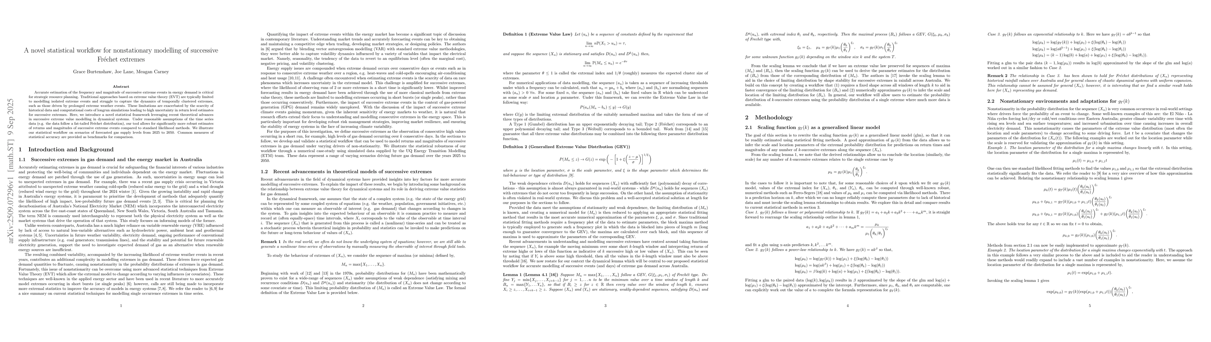 Accurate estimation of the frequency and magnitude of successive extreme events in energy demand is critical for strategic resource planning. Traditional approaches based on extreme value theory (EVT) are typically limited to modelling isolated extreme events and struggle to capture the dynamics of temporally clustered extremes, such as those driven by prolonged extreme weather events. These limitations are exacerbated by the scarcity of historical data and computational costs of longrun simulations leading to high uncertainty in return level estimates for successive extremes. Here, we introduce a novel statistical framework leveraging recent theoretical advances in successive extreme value modelling in dynamical systems. Under reasonable assumptions of the time series data (e.g. the data follow a fat-tailed Fr\'{e}chet distribution), our tool allows for significantly more robust estimates of returns and magnitudes of successive extreme events compared to standard likelihood methods. We illustrate our statistical workflow on scenarios of forecasted gas supply levels from 2025 to 2050. Common measures of statistical accuracy are provided as benchmarks for comparison.