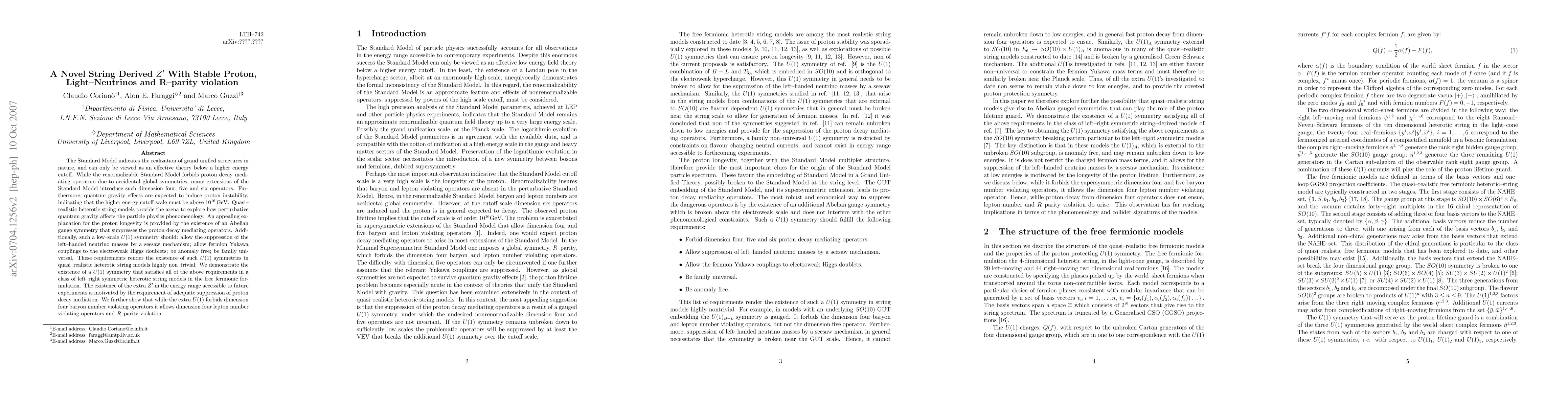 A new string-derived Z' boson is proposed with a stable proton, light neutrinos, and R-parity violation, solving the long-standing issue of proton decay in the Standard Model.