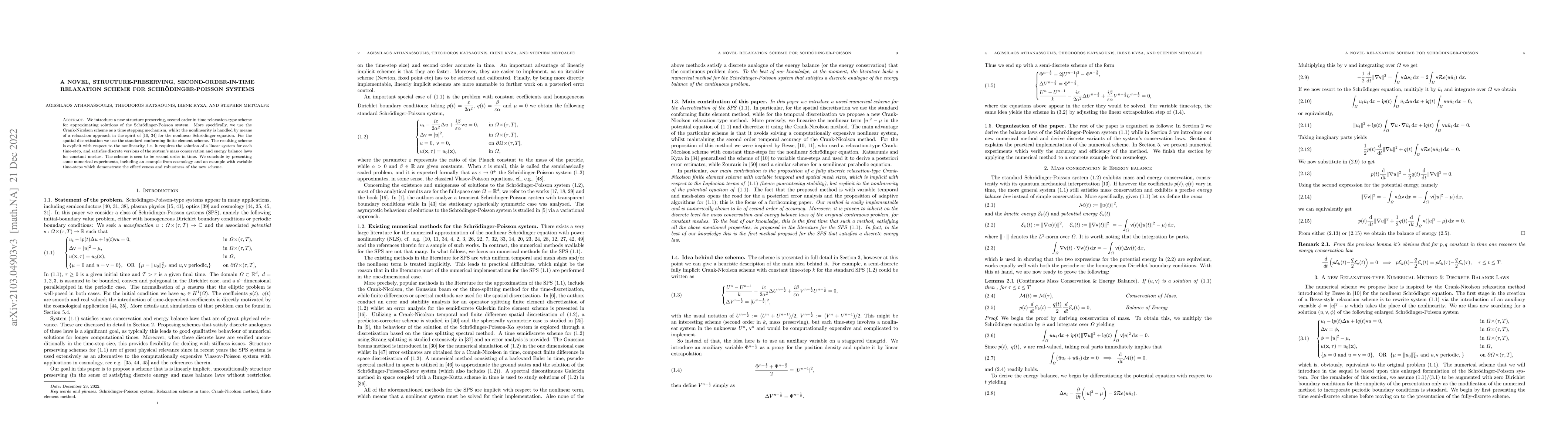 This paper introduces a novel, structure-preserving second-order relaxation scheme for solving the Schrödinger-Poisson system, employing Crank-Nicolson time stepping and a relaxation approach for nonlinearity. The scheme is shown to conserve mass and energy, and numerical experiments demonstrate its effectiveness and robustness.