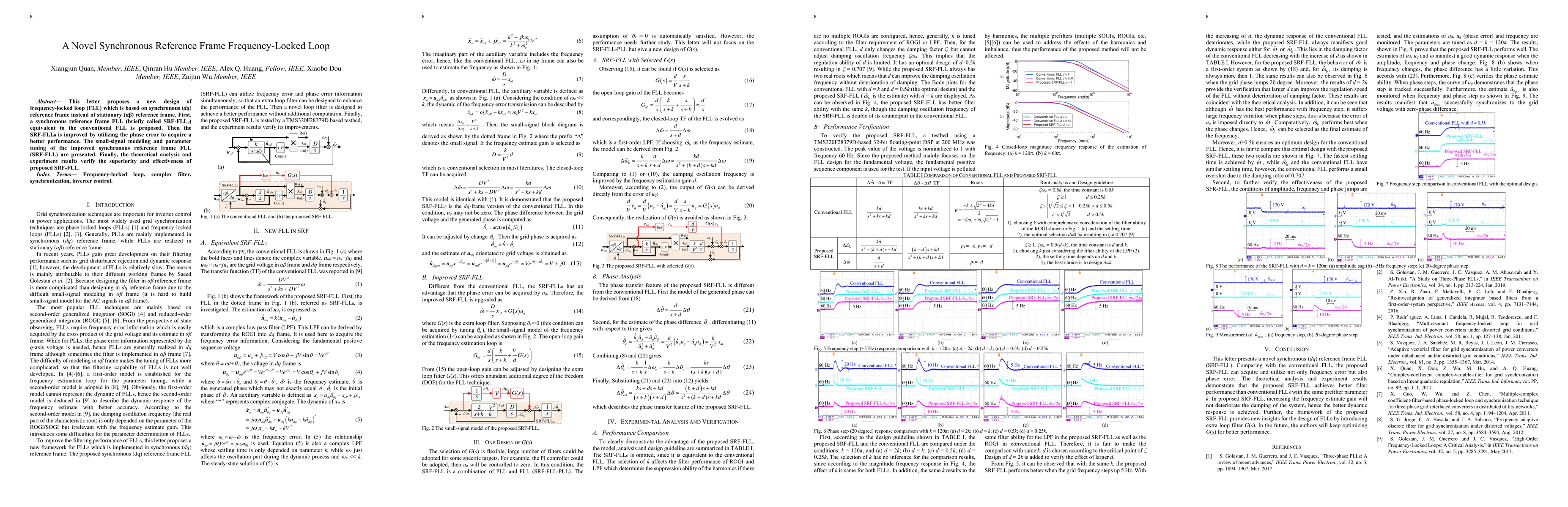 A new synchronous reference frame frequency-locked loop (FLL) design is proposed for improved performance, featuring a better phase error acquisition method.