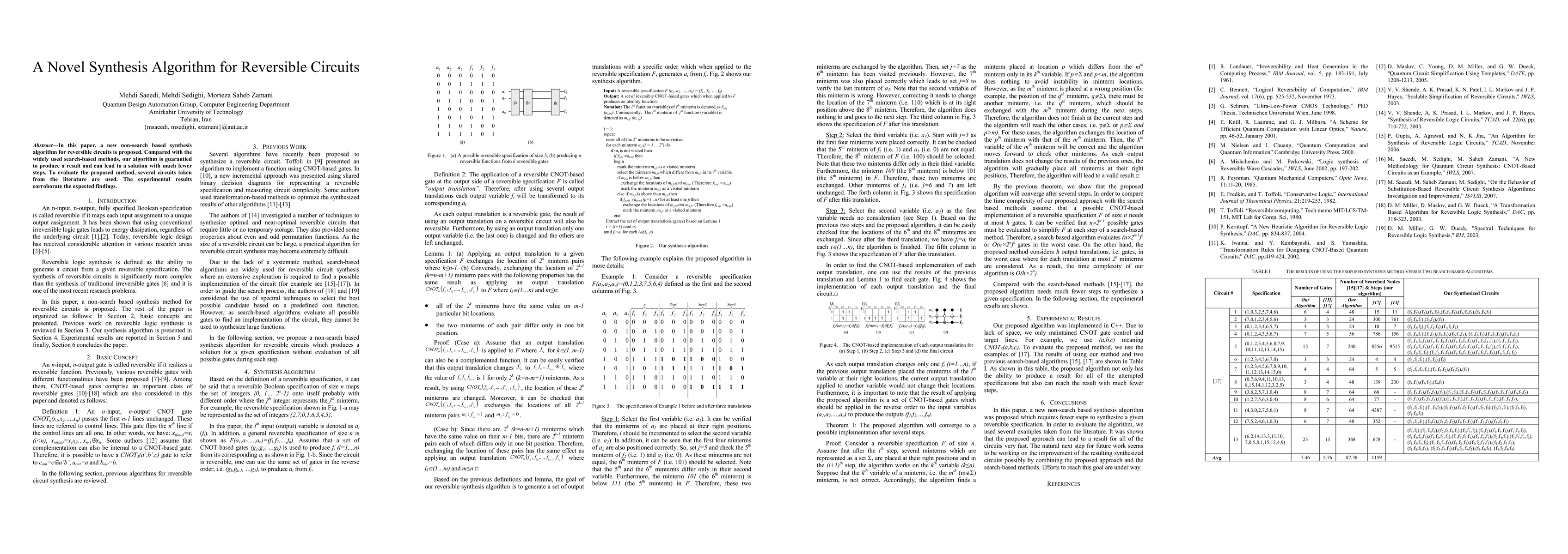 This paper presents a novel, non-search based algorithm for synthesizing reversible circuits, which is guaranteed to find a solution in fewer steps than existing search-based methods. Experimental validation using literature circuits confirms the algorithm's efficiency.