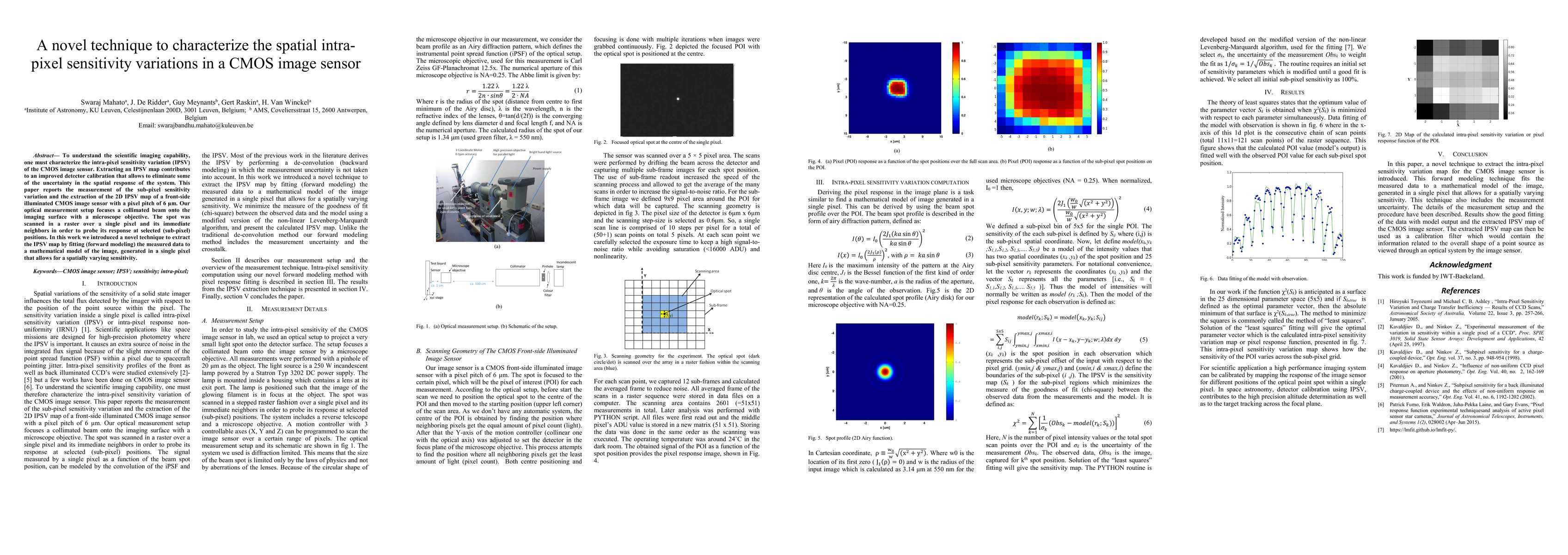 This paper introduces a novel technique to characterize spatial intra-pixel sensitivity variations (IPSV) in CMOS image sensors, aiming to improve detector calibration. The method involves scanning a collimated beam over a pixel to measure sub-pixel sensitivity and extracting a 2D IPSV map through forward modeling of the measured data.