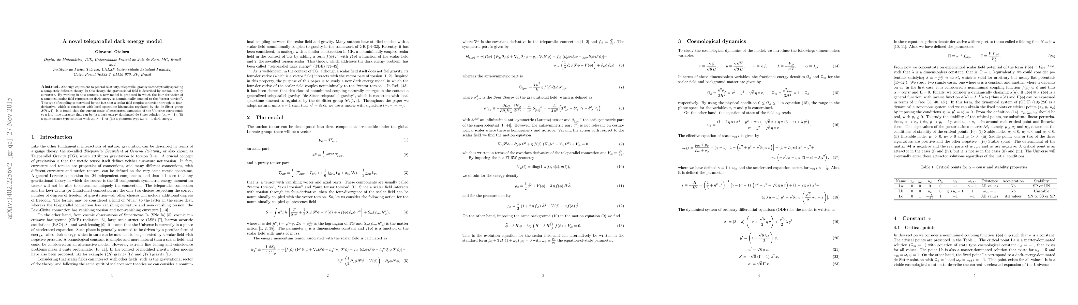 A new teleparallel dark energy model proposes a novel framework for understanding dark energy, offering alternative solutions to de Sitter expansion, quintessence, and phantom types of dark energy.