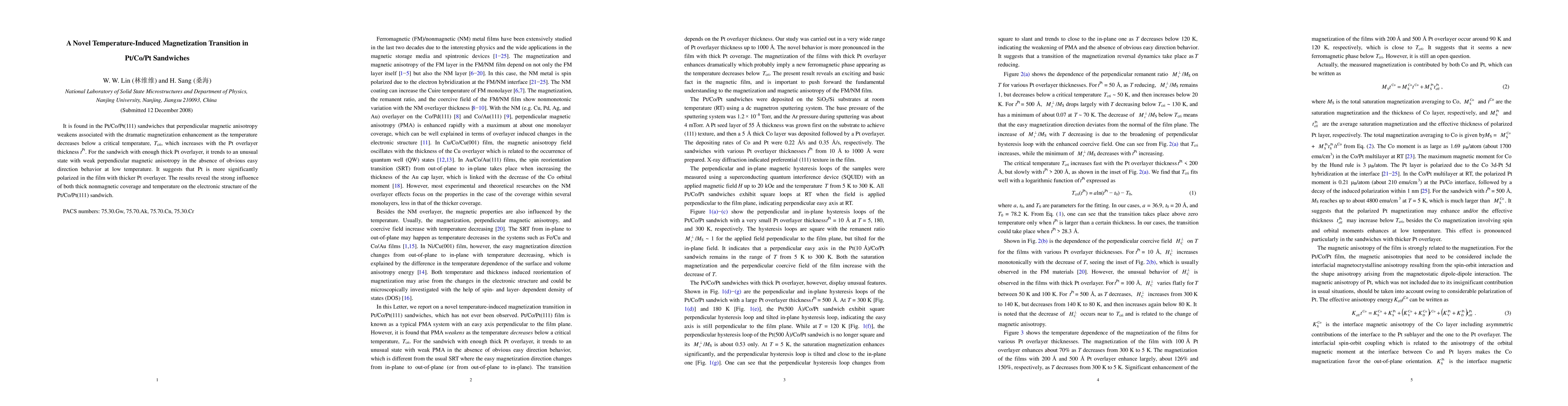 Researchers discovered a novel temperature-induced magnetization transition in Pt/Co/Pt sandwiches, where perpendicular magnetic anisotropy weakens with decreasing temperature, influenced by the thickness of the Pt overlayer.
