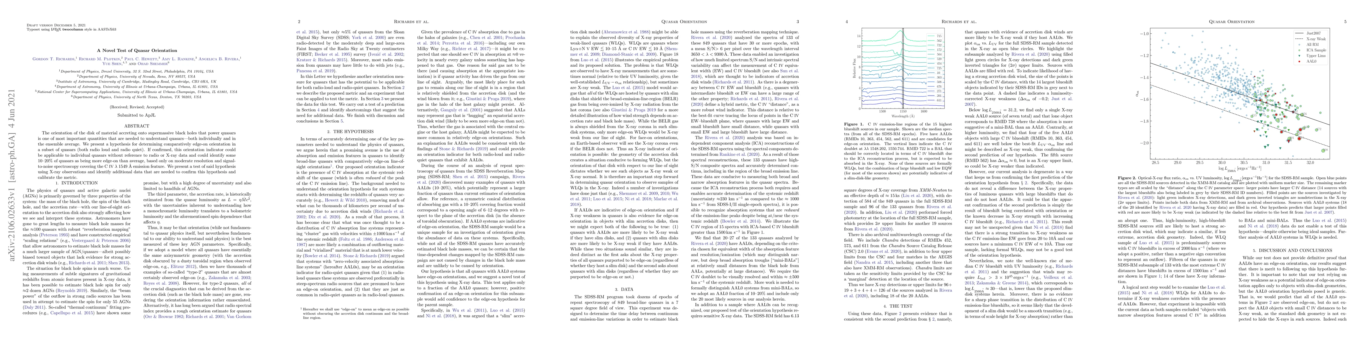 The orientation of the disk of material accreting onto supermassive black holes that power quasars is one of most important quantities that are needed to understand quasars -- both individually and in the ensemble average. We present a hypothesis for determining comparatively edge-on orientation in a subset of quasars (both radio loud and radio quiet). If confirmed, this orientation indicator could be applicable to individual quasars without reference to radio or X-ray data and could identify some 10-20% of quasars as being more edge-on than average, based only on moderate resolution and signal-to-noise spectroscopy covering the CIV 1549A emission feature. We present a test of said hypothesis using X-ray observations and identify additional data that are needed to confirm this hypothesis and calibrate the metric.