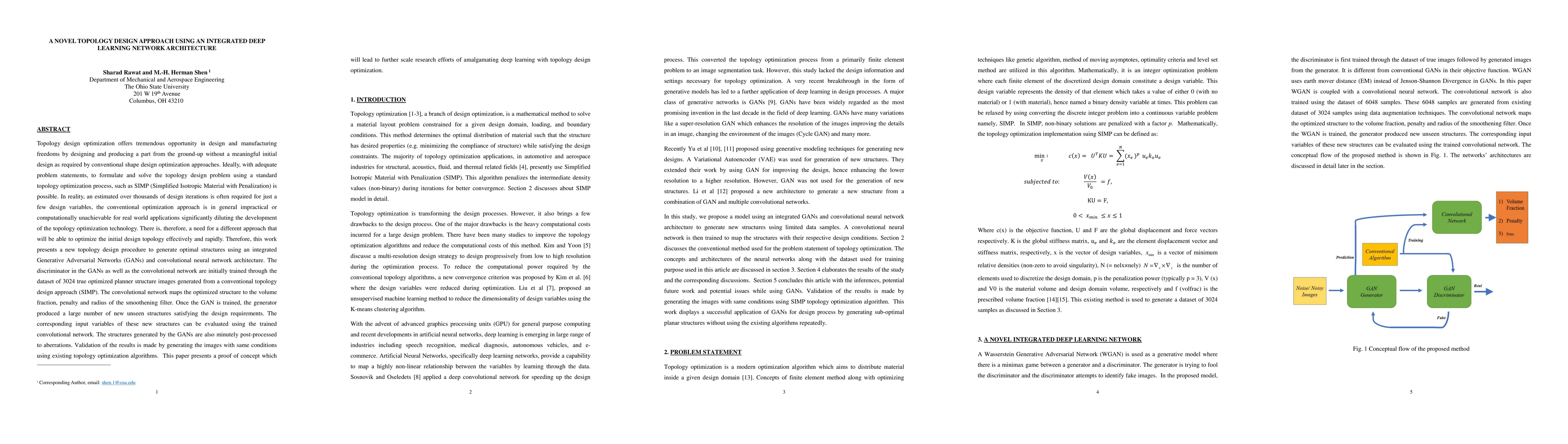 This paper proposes a novel topology design optimization method using an integrated Generative Adversarial Networks (GANs) and convolutional neural network architecture to rapidly generate optimal structures without the need for extensive iterative processes. This approach aims to overcome the computational limitations of conventional topology optimization methods.