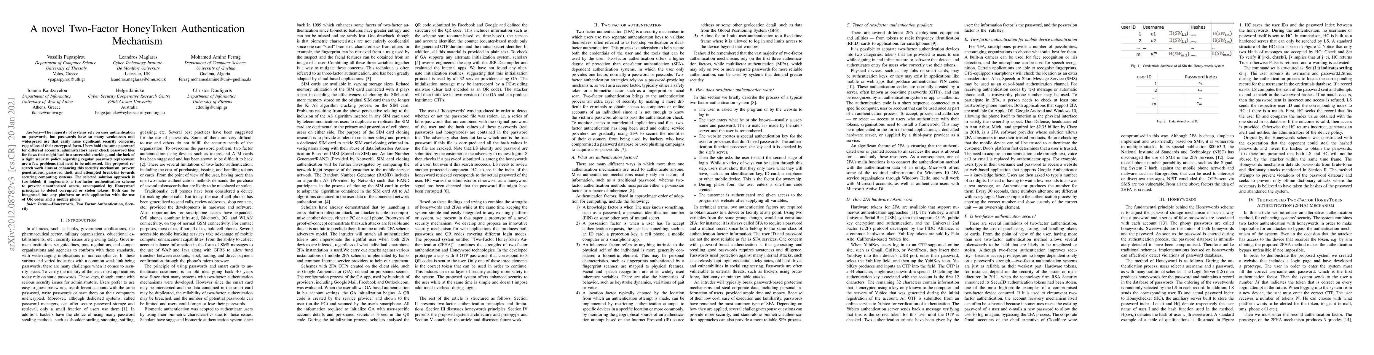 This paper proposes a novel two-factor authentication mechanism combining traditional two-factor authentication with Honeyword principles to enhance security and detect compromised credentials. The solution integrates QR codes and mobile phones for easy implementation, aiming to prevent unauthorized access and password theft.