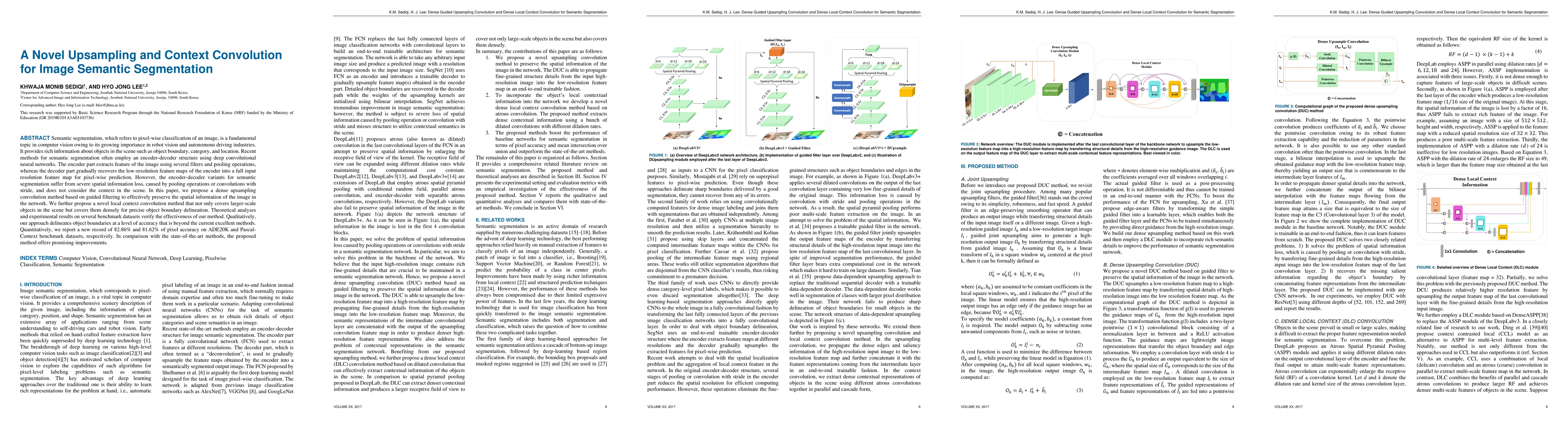 This paper proposes a novel upsampling and context convolution method for semantic segmentation, addressing spatial information loss and context consideration in encoder-decoder networks. The method achieves record-high pixel accuracy on ADE20K and Pascal-Context datasets, outperforming state-of-the-art techniques.
