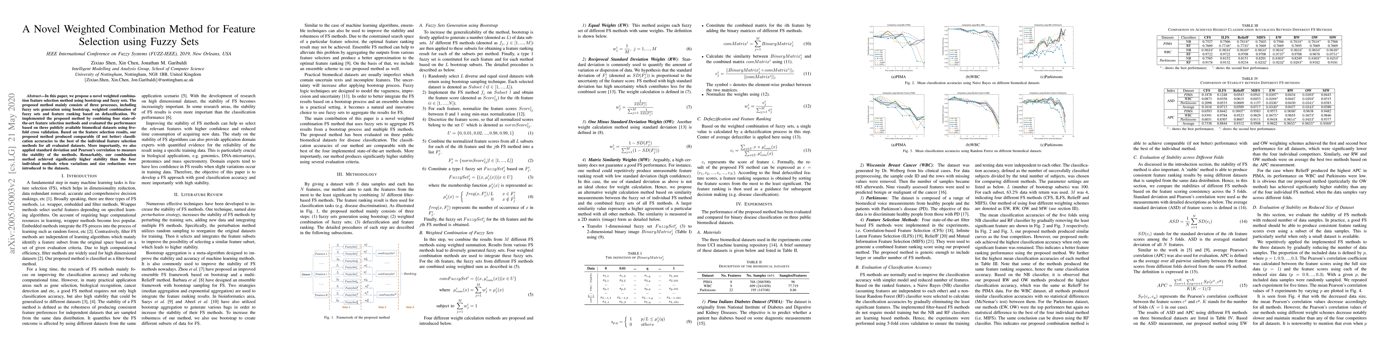 This paper introduces a new feature selection method combining bootstrap and fuzzy sets, which outperforms individual state-of-the-art methods in classification accuracy and demonstrates significantly higher stability across variations and reductions in dataset size.