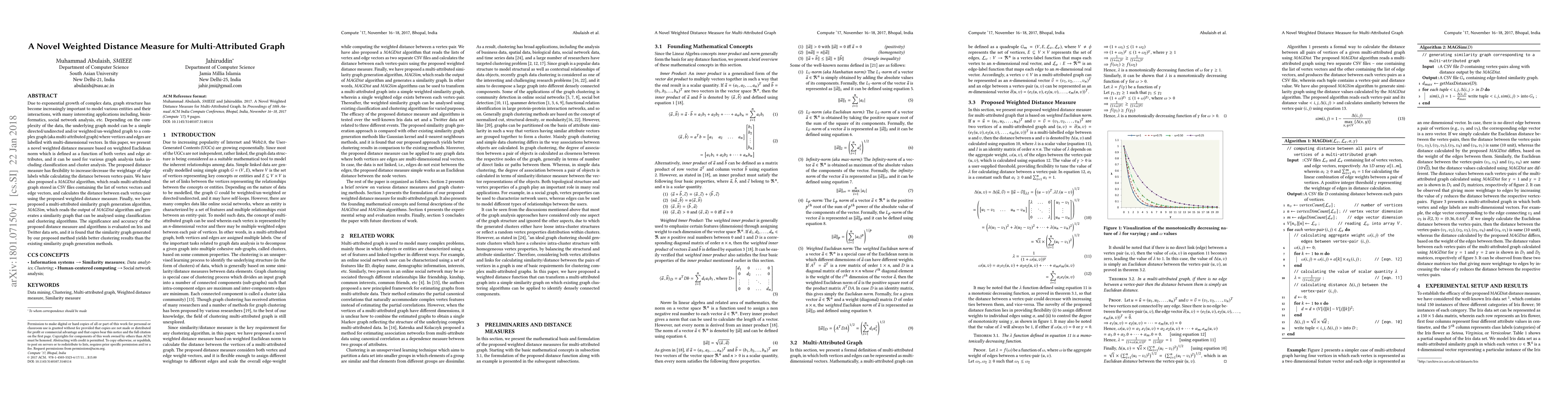 The paper presents a novel weighted distance measure for multi-attributed graphs based on weighted Euclidean norm, along with two algorithms, MAGDist and MAGSim, for distance calculation and similarity graph generation, respectively.