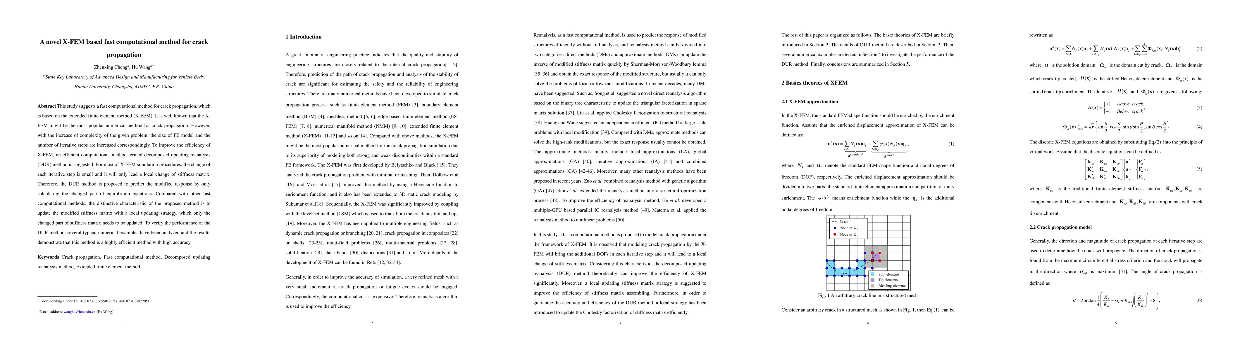 A novel X-FEM based fast computational method for crack propagation is proposed, which improves efficiency by updating only the changed part of the stiffness matrix, demonstrating high accuracy with reduced computational time.