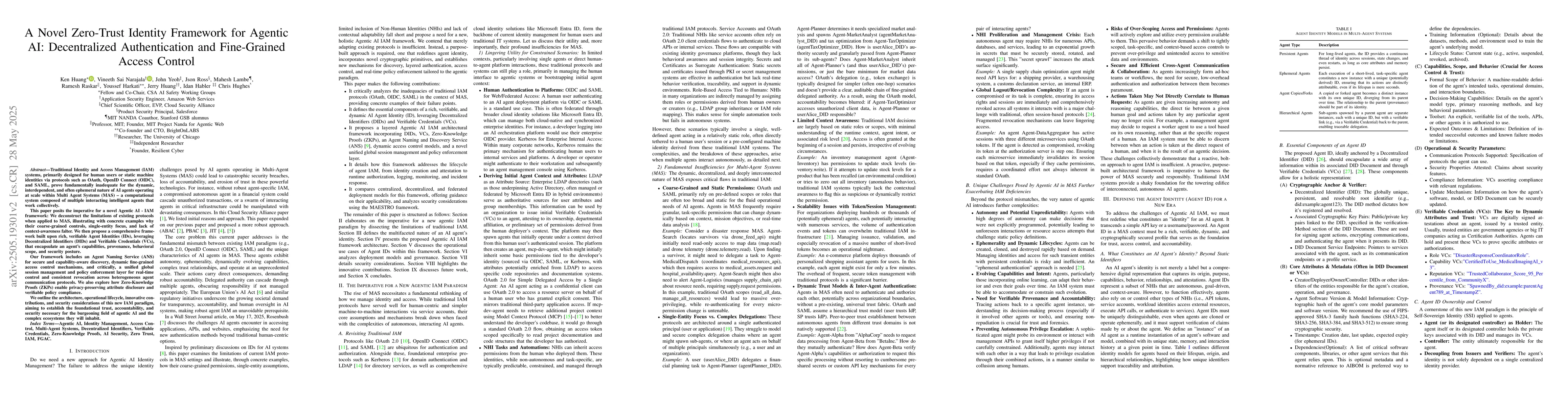 A new identity framework for agentic AI proposes a decentralized authentication system with fine-grained access control to address the limitations of traditional IAM systems in Multi Agent Systems.