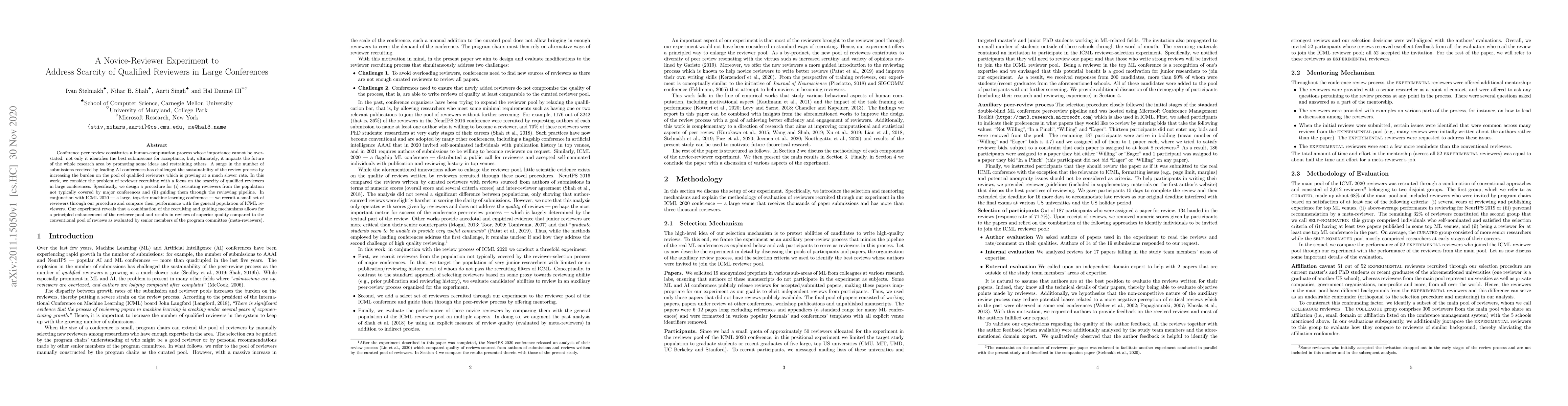 This study explores a novice-reviewer recruitment process to alleviate the scarcity of qualified reviewers in large conferences by recruiting and guiding non-traditional reviewers. The experiment conducted alongside ICML 2020 shows that this approach can enhance the reviewer pool and produce higher-quality reviews, as evaluated by senior committee members.