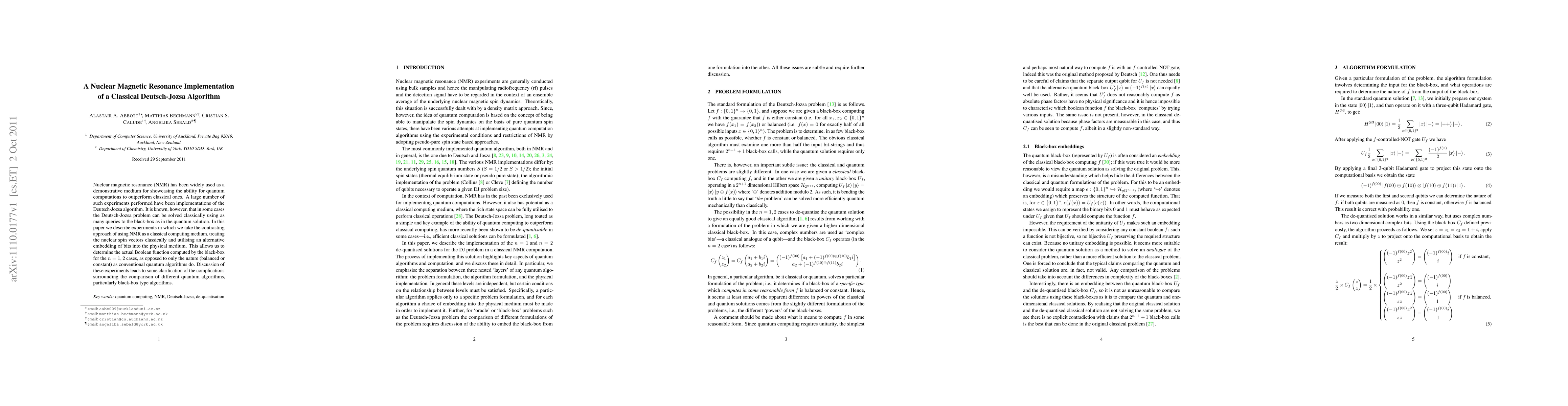 Nuclear magnetic resonance (NMR) has been widely used as a demonstrative medium for showcasing the ability for quantum computations to outperform classical ones. A large number of such experiments performed have been implementations of the Deutsch-Jozsa algorithm. It is known, however, that in some cases the Deutsch-Jozsa problem can be solved classically using as many queries to the black-box as in the quantum solution. In this paper we describe experiments in which we take the contrasting approach of using NMR as a classical computing medium, treating the nuclear spin vectors classically and utilising an alternative embedding of bits into the physical medium. This allows us to determine the actual Boolean function computed by the black-box for the n=1,2 cases, as opposed to only the nature (balanced or constant) as conventional quantum algorithms do. Discussion of these experiments leads to some clarification of the complications surrounding the comparison of different quantum algorithms, particularly black-box type algorithms.