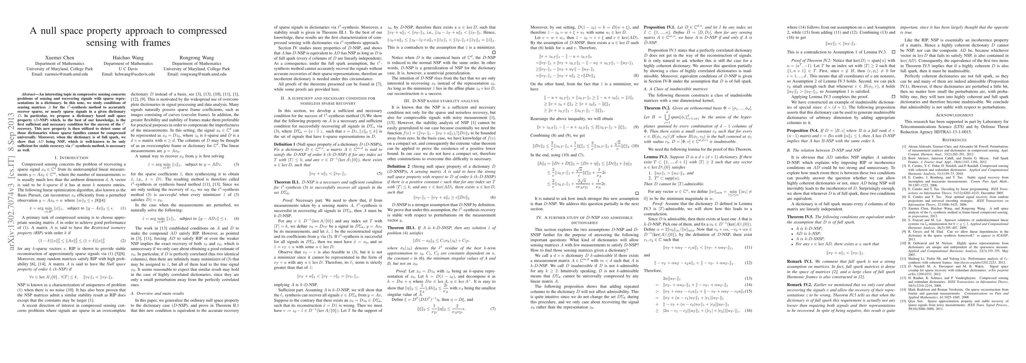 An interesting topic in compressive sensing concerns problems of sensing and recovering signals with sparse representations in a dictionary. In this note, we study conditions of sensing matrices A for the L1-synthesis method to accurately recover sparse, or nearly sparse signals in a given dictionary D. In particular, we propose a dictionary based null space property (D-NSP) which, to the best of our knowledge, is the first sufficient and necessary condition for the success of the L1 recovery. This new property is then utilized to detect some of those dictionaries whose sparse families cannot be compressed universally. Moreover, when the dictionary is full spark, we show that AD being NSP, which is well-known to be only sufficient for stable recovery via L1-synthesis method, is indeed necessary as well.