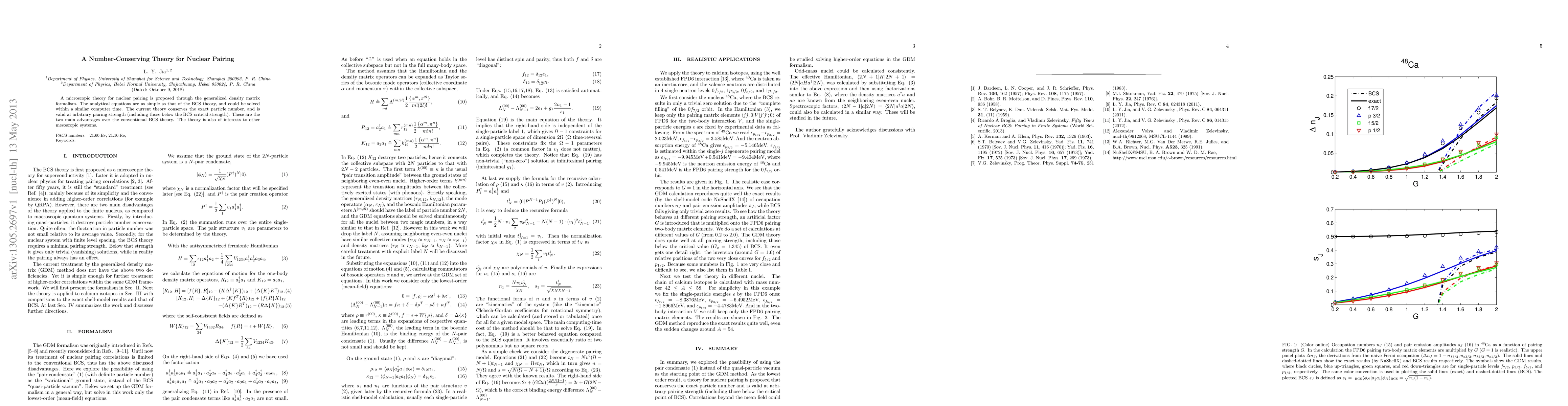 A microscopic theory for nuclear pairing is proposed through the generalized density matrix formalism. The analytical equations are as simple as that of the BCS theory, and could be solved within a similar computer time. The current theory conserves the exact particle number, and is valid at arbitrary pairing strength (including those below the BCS critical strength). These are the two main advantages over the conventional BCS theory. The theory is also of interests to other mesoscopic systems.
