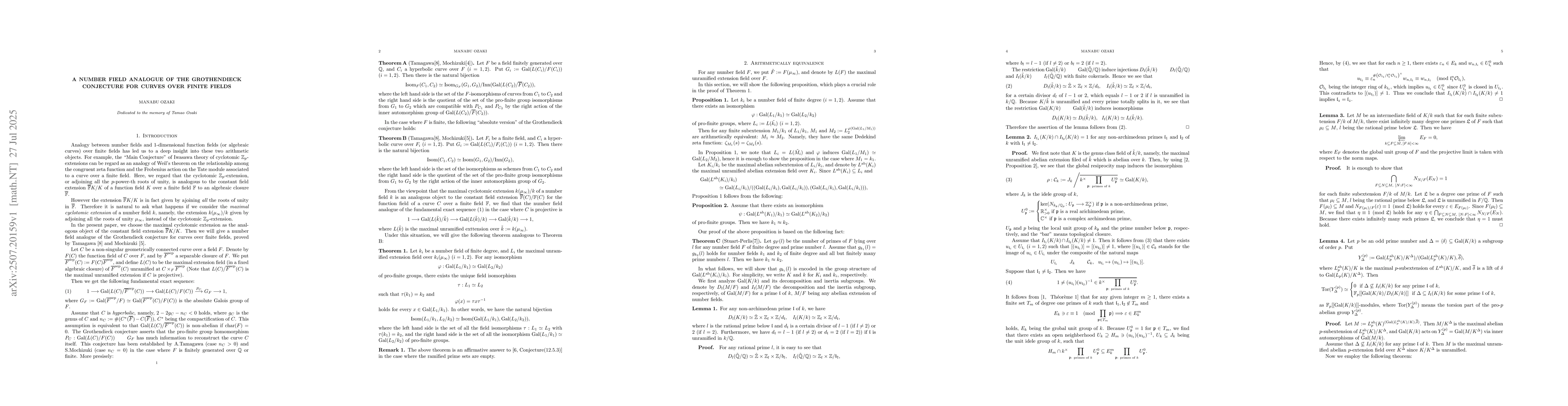 In the present paper, we provide a new analogy between number fields and 1-dimensional function fields over finite fields from the viewpoint that the maximal cyclotomic extension of a number field is analogous to the constant field extension of a function field to an algebraic closure. Namely, we give a number field analogue of the Grothendieck conjecture for hyperbolic curves over finite fields proved by Tamagawa and Mochizuki, which is an affirmative answer to Conjecture(12.5.3) of ``Cohomology of number fields" by Neukirch-Schmidt-Wingberg in the case where the ramified prime sets are empty.
