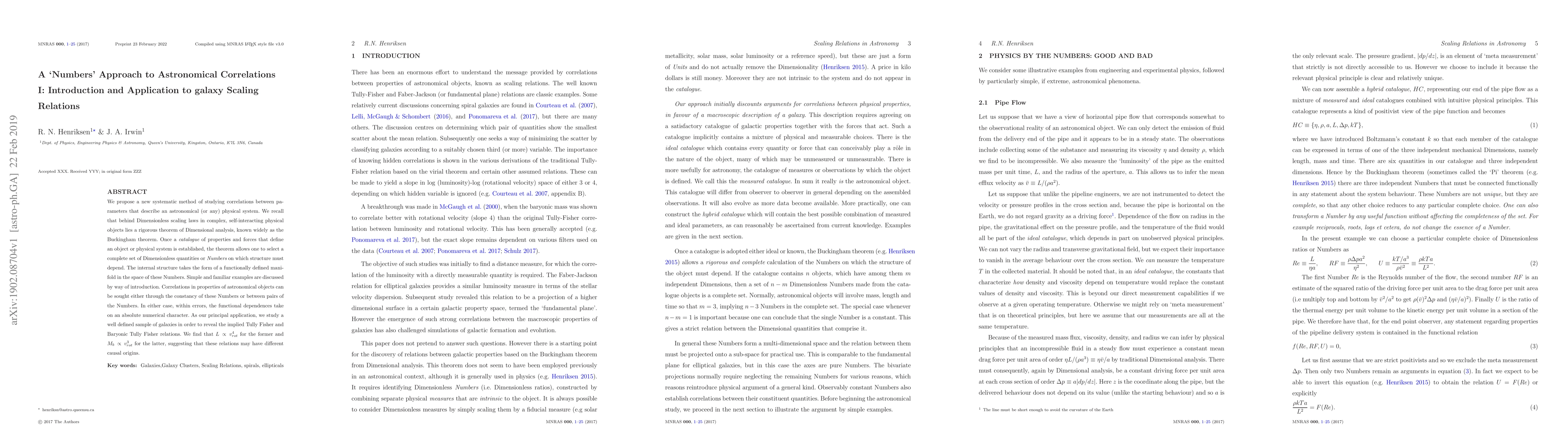 Researchers propose a new method to study correlations in astronomical systems using dimensionless quantities, revealing distinct causal origins of galaxy relations like Tully Fisher relations.