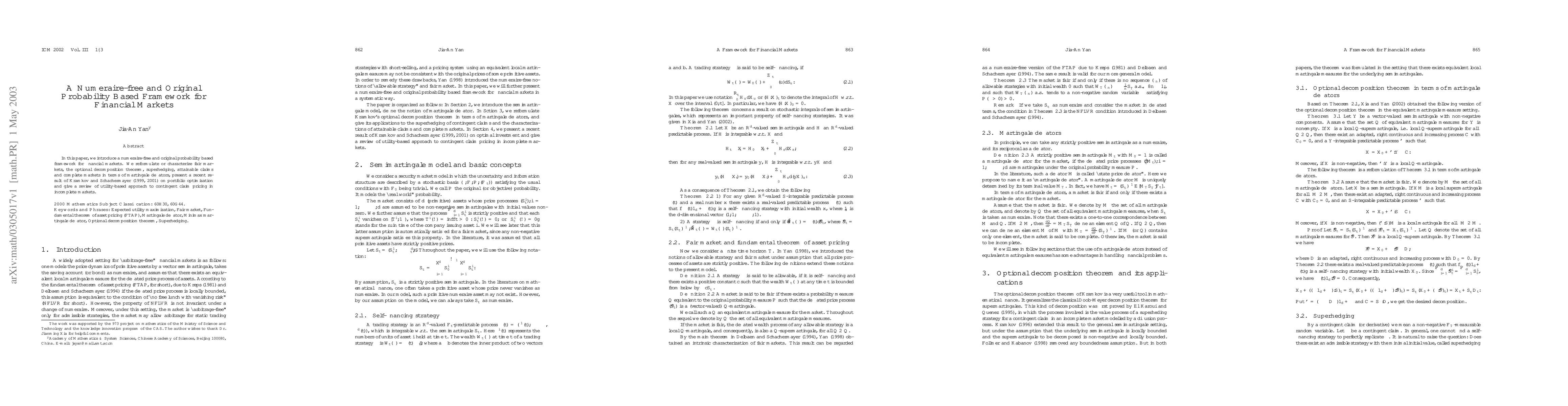 In this paper, we introduce a numeraire-free and original probability based framework for financial markets. We reformulate or characterize fair markets, the optional decomposition theorem, superhedging, attainable claims and complete markets in terms of martingale deflators, present a recent result of Kramkov and Schachermayer (1999, 2001) on portfolio optimization and give a review of utility-based approach to contingent claim pricing in incomplete markets.