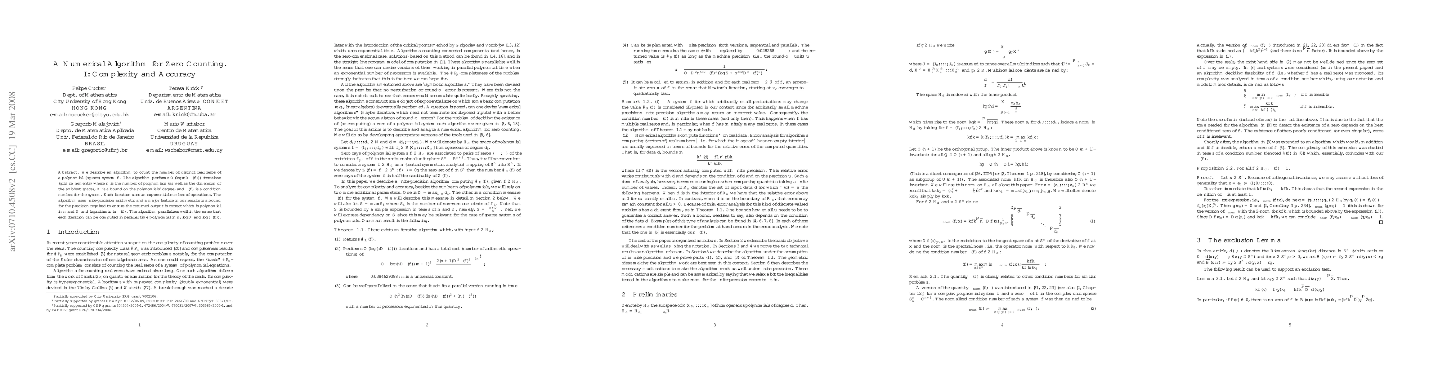 This paper presents a numerical algorithm for counting distinct real zeros of polynomial systems, achieving O(nDκ(f)) iterations with polynomial time per iteration, contrasting with existing symbolic algorithms' exponential precision requirements. The algorithm's precision bound is notably lower and it can parallelize effectively.