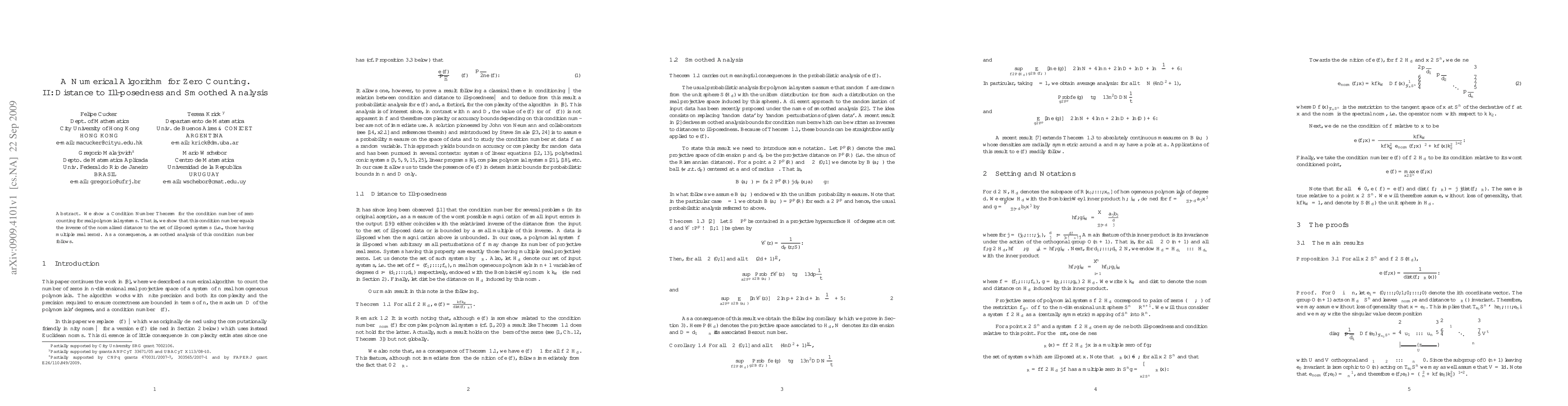 This paper presents a Condition Number Theorem for zero counting in real polynomial systems, demonstrating that the condition number is the inverse of the normalized distance to ill-posed systems. It also introduces a smoothed analysis of this condition number.