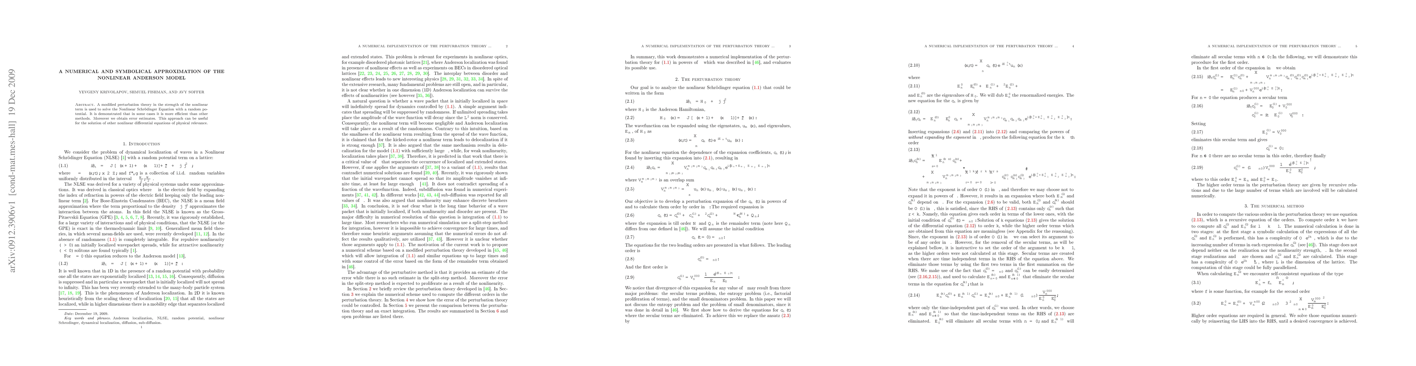 A modified perturbation theory in the strength of the nonlinear term is used to solve the Nonlinear Schroedinger Equation with a random potential. It is demonstrated that in some cases it is more efficient than other methods. Moreover we obtain error estimates. This approach can be useful for the solution of other nonlinear differential equations of physical relevance.