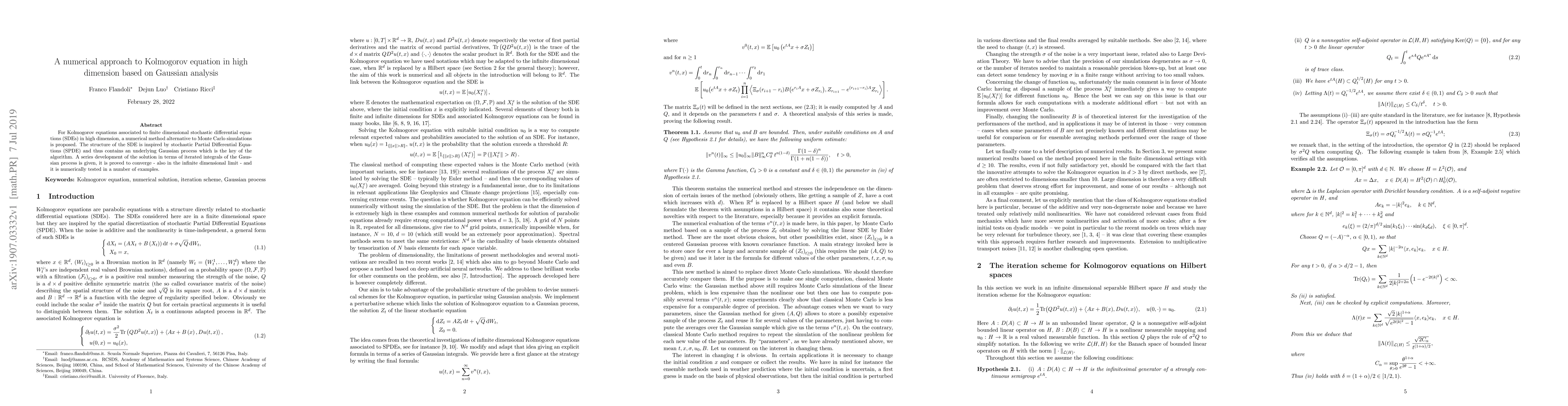 For Kolmogorov equations associated to finite dimensional stochastic differential equations (SDEs) in high dimension, a numerical method alternative to Monte Carlo simulations is proposed. The structure of the SDE is inspired by stochastic Partial Differential Equations (SPDE) and thus contains an underlying Gaussian process which is the key of the algorithm. A series development of the solution in terms of iterated integrals of the Gaussian process is given, it is proved to converge - also in the infinite dimensional limit - and it is numerically tested in a number of examples.