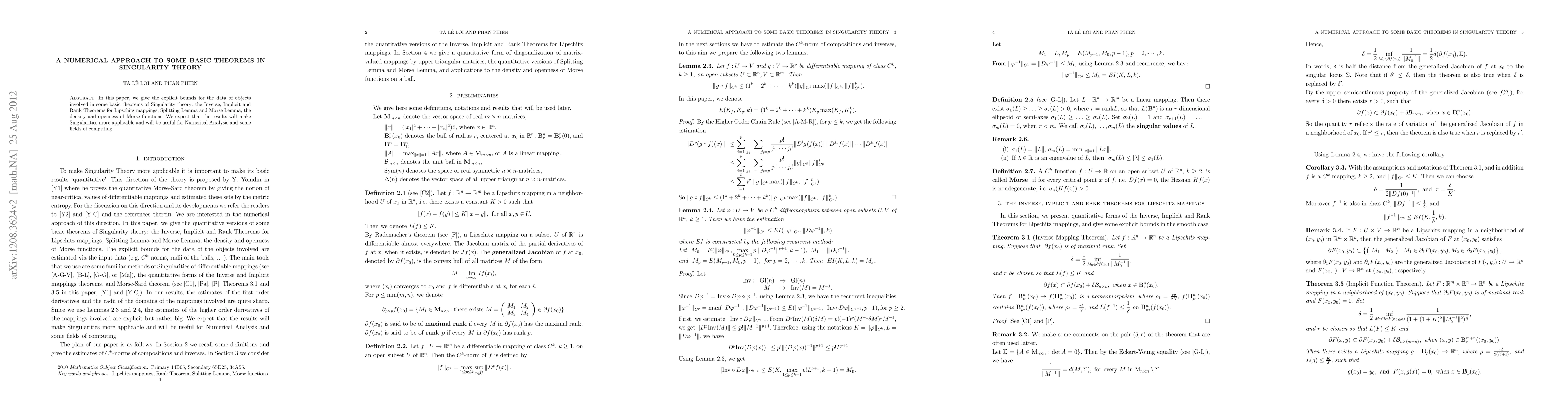 This paper establishes explicit bounds for various theorems in Singularity theory, making them more applicable and useful for Numerical Analysis and computing fields.
