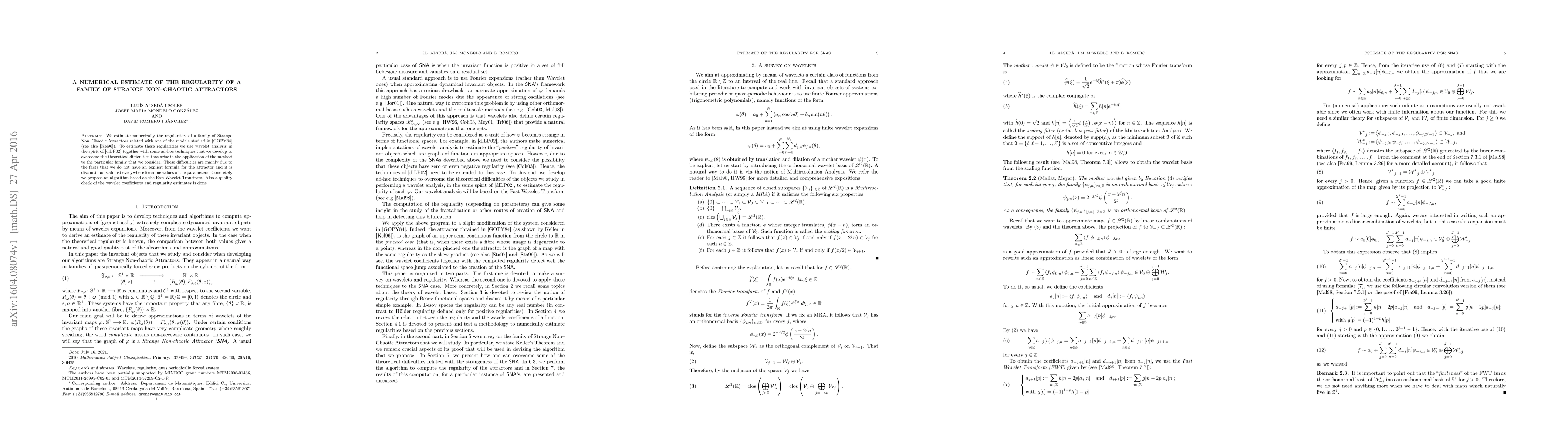 Researchers estimate the regularity of a family of Strange Non-Chaotic Attractors using wavelet analysis and develop an algorithm to overcome technical difficulties. They find that some attractors exhibit regular patterns despite being discontinuous.