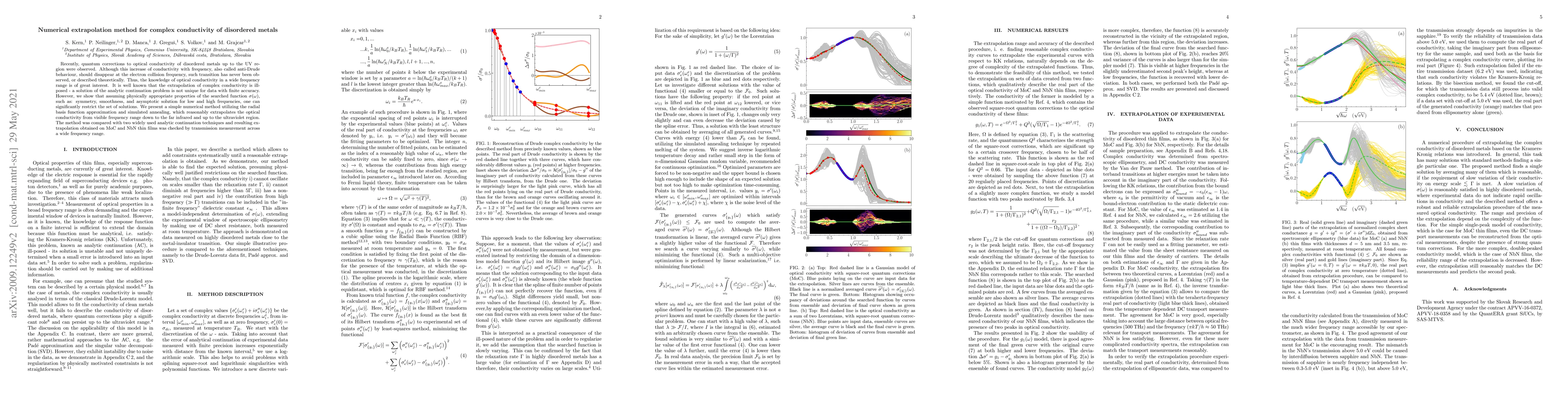 This paper proposes a numerical method for extrapolating the complex conductivity of disordered metals across a broad frequency range, addressing the lack of theoretical description for the transition from anti-Drude behavior to conventional behavior. The method uses radial basis function approximation and simulated annealing, validated by transmission measurements on MoC and NbN thin films.