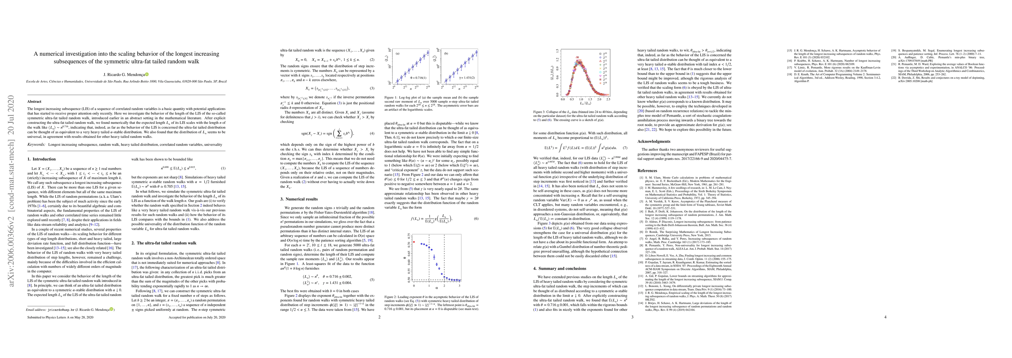 This paper numerically investigates the scaling behavior of the longest increasing subsequences (LIS) of a symmetric ultra-fat tailed random walk, finding that the expected length of the LIS scales as $\langle L_{n} \rangle \sim n^{0.716}$. The results suggest the ultra-fat tailed distribution behaves similarly to a heavy tailed $\alpha$-stable distribution.
