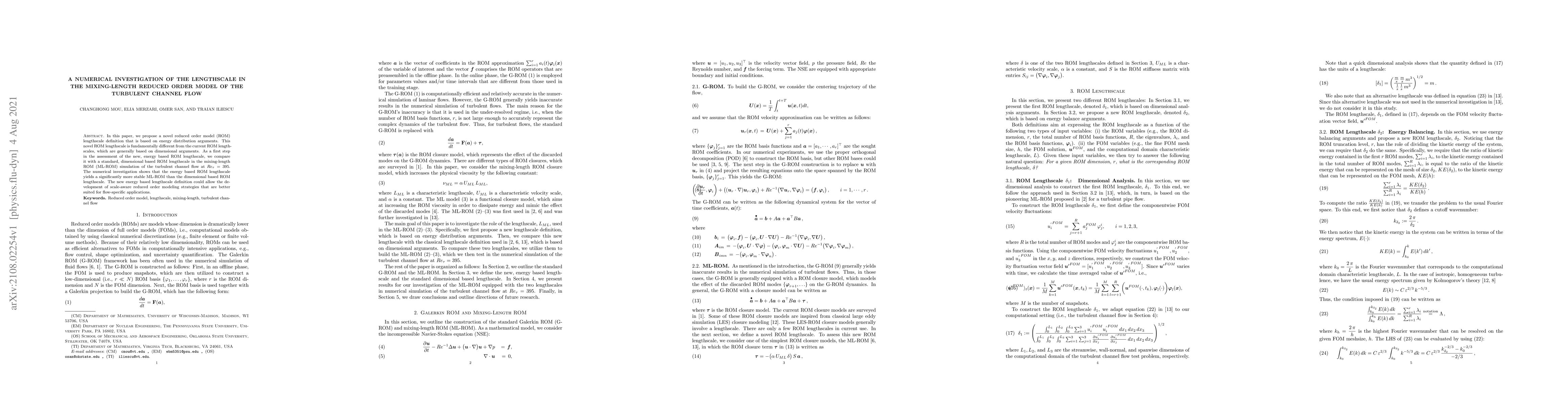 A new energy-based lengthscale definition improves stability in turbulent channel flow simulations, enabling better reduced order modeling for specific applications.