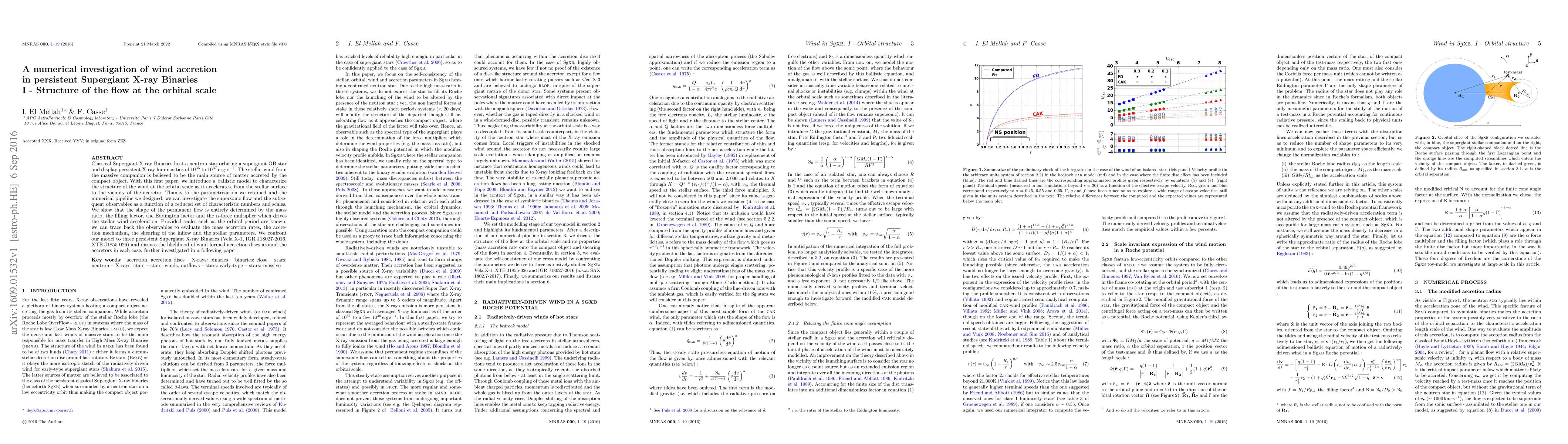 Classical Supergiant X-ray Binaries host a neutron star orbiting a supergiant OB star and display persistent X-ray luminosities of 10$^{35}$ to 10$^{37}$ erg/s. The stellar wind from the massive companion is believed to be the main source of matter accreted by the compact object. With this first paper, we introduce a ballistic model to characterize the structure of the wind at the orbital scale as it accelerates, from the stellar surface to the vicinity of the accretor. Thanks to the parametrization we retained and the numerical pipeline we designed, we can investigate the supersonic flow and the subsequent observables as a function of a reduced set of characteristic numbers and scales. We show that the shape of the permanent flow is entirely determined by the mass ratio, the filling factor, the Eddington factor and the $\alpha$-force multiplier which drives the stellar wind acceleration. Provided scales such as the orbital period are known, we can trace back the observables to evaluate the mass accretion rates, the accretion mechanism, the shearing of the inflow and the stellar parameters. We confront our model to three persistent Supergiant X-ray Binaries (Vela X-1, IGR J18027-2016, XTE J1855-026) and discuss the likelihood of wind-formed accretion discs around the accretors in each case, further investigated in a following paper.