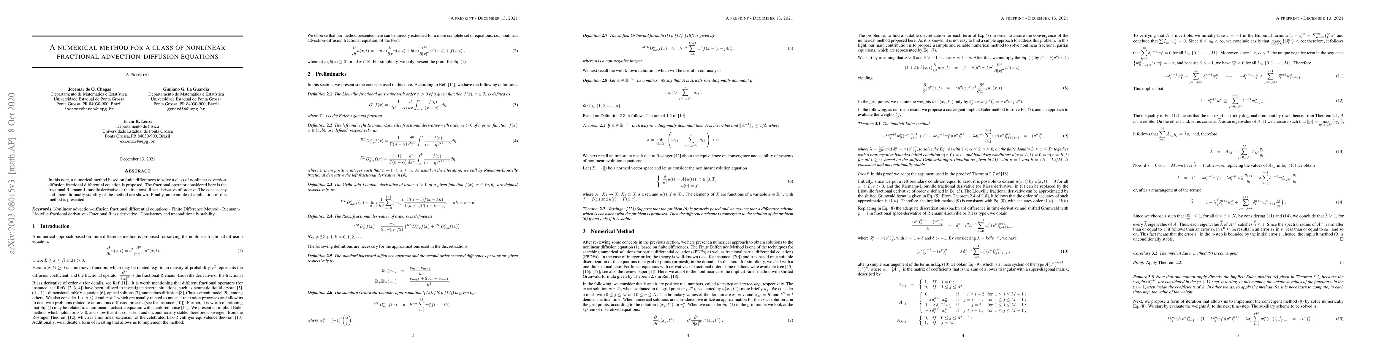This paper proposes a finite difference numerical method for solving nonlinear fractional advection-diffusion equations using fractional Riemann-Liouville or Riesz derivatives. The method demonstrates consistency and unconditional stability, and an application example is provided to illustrate its effectiveness.