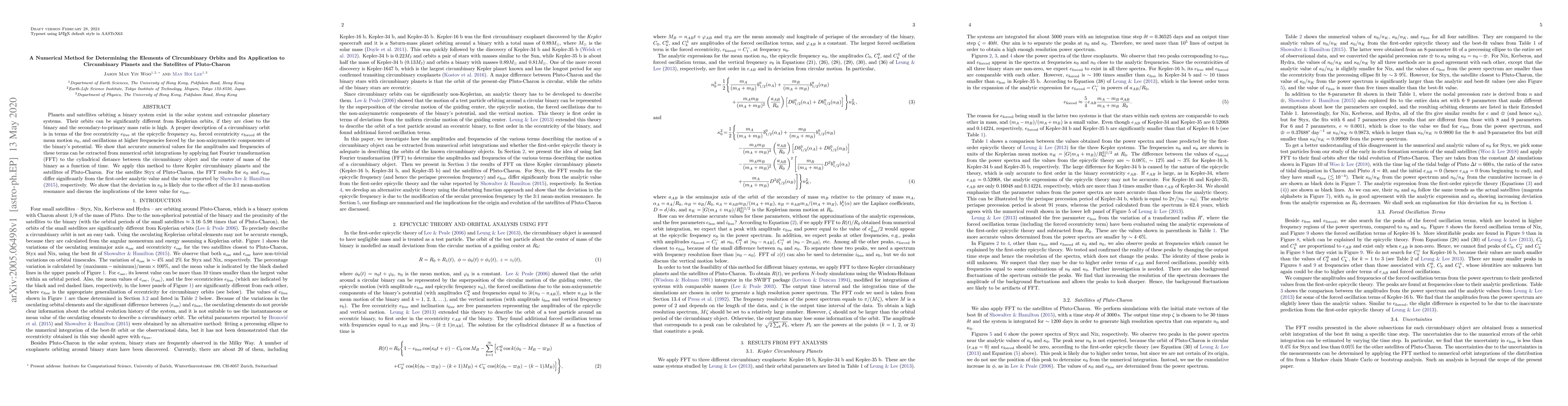 This paper presents a numerical method for determining the elements of circumbinary orbits using fast Fourier transformation (FFT) and applies it to circumbinary planets and Pluto-Charon's satellites. The method reveals significant deviations in orbital parameters for Styx compared to previous estimates, highlighting the influence of mean-motion resonances.