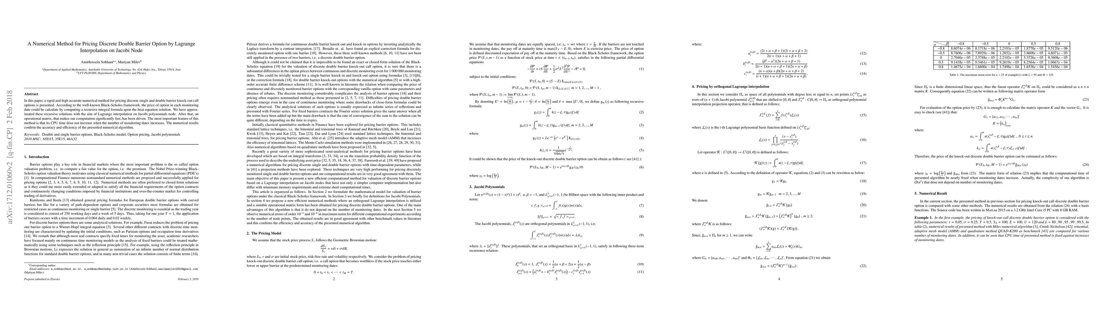 A new numerical method using Lagrange interpolation on Jacobi nodes efficiently prices discrete double barrier options without increasing CPU time as the number of monitoring dates increases.