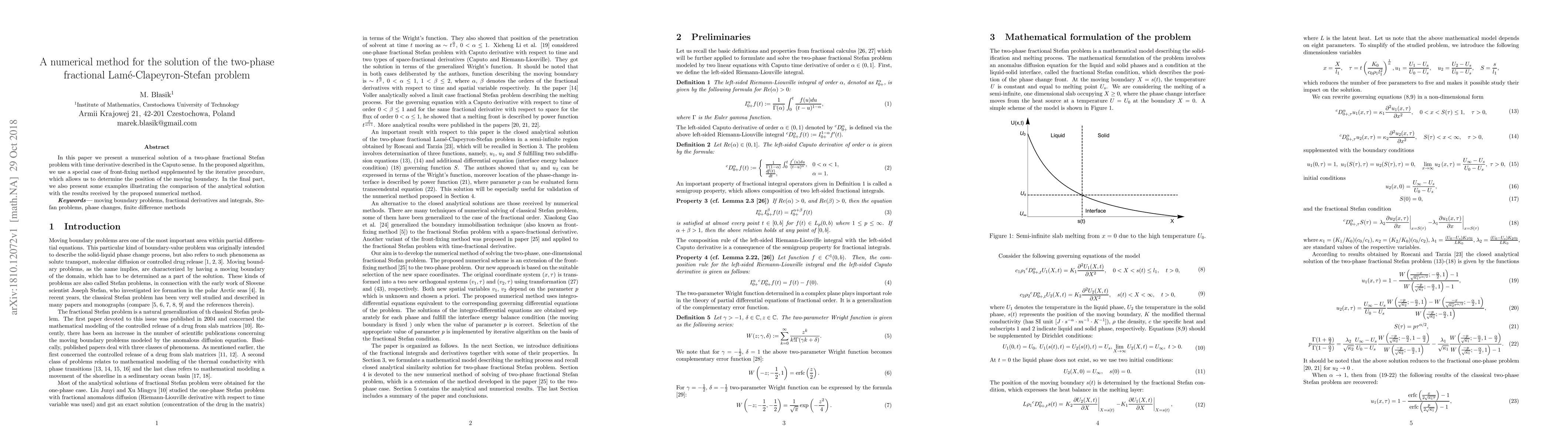 This paper introduces a numerical method for solving a two-phase fractional Stefan problem using a front-fixing technique and an iterative procedure to determine the moving boundary. The results are compared with analytical solutions to validate the proposed method.