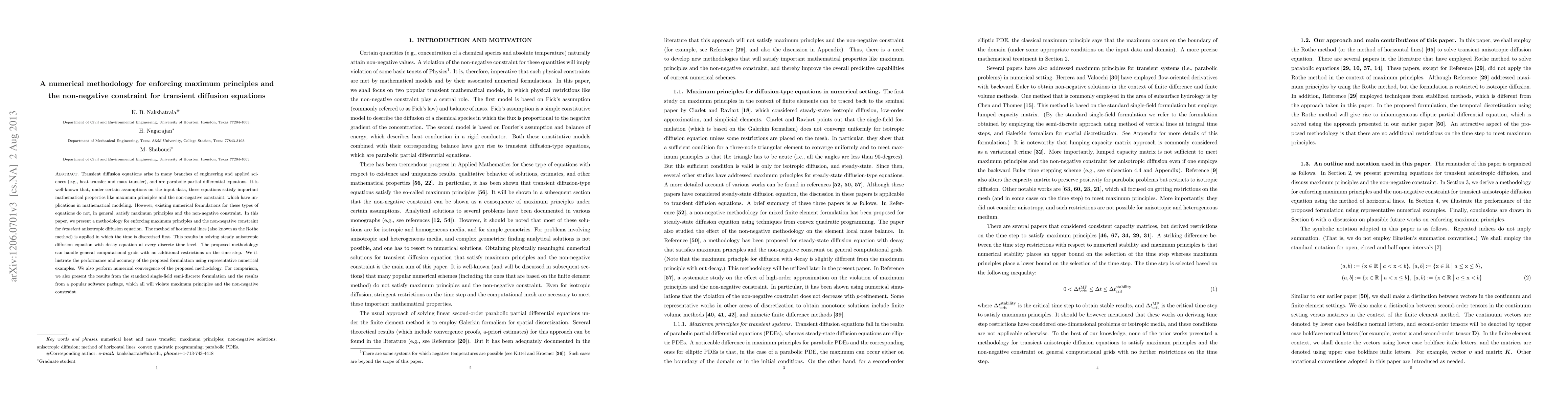 This paper introduces a numerical methodology to enforce maximum principles and non-negative constraints for transient diffusion equations, using the Rothe method for time discretization. The method ensures compliance with these properties on general grids without additional time step restrictions, demonstrated through numerical examples and convergence analysis.