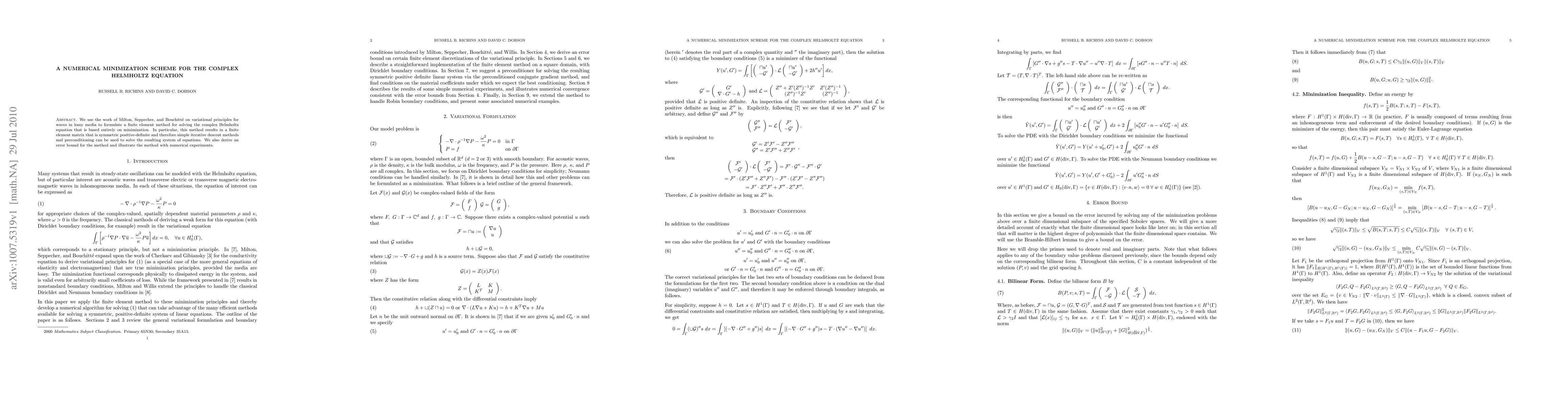 We use the work of Milton, Seppecher, and Bouchitt\'{e} on variational principles for waves in lossy media to formulate a finite element method for solving the complex Helmholtz equation that is based entirely on minimization. In particular, this method results in a finite element matrix that is symmetric positive-definite and therefore simple iterative descent methods and preconditioning can be used to solve the resulting system of equations. We also derive an error bound for the method and illustrate the method with numerical experiments.